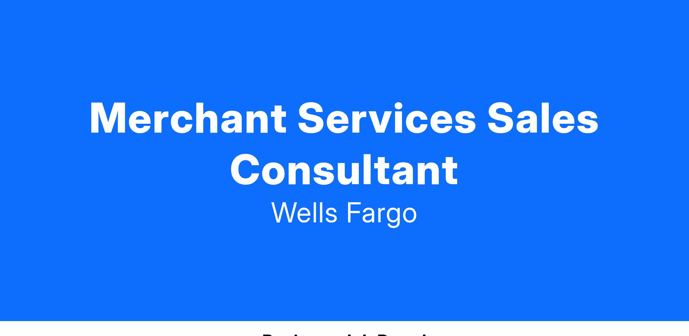 Wells Fargo is seeking a Merchant Services Sales Consultant for the Wells Fargo Merchant Services In-Market Sales Team. This role will participate in selling merchant products and services to complex diverse customers.