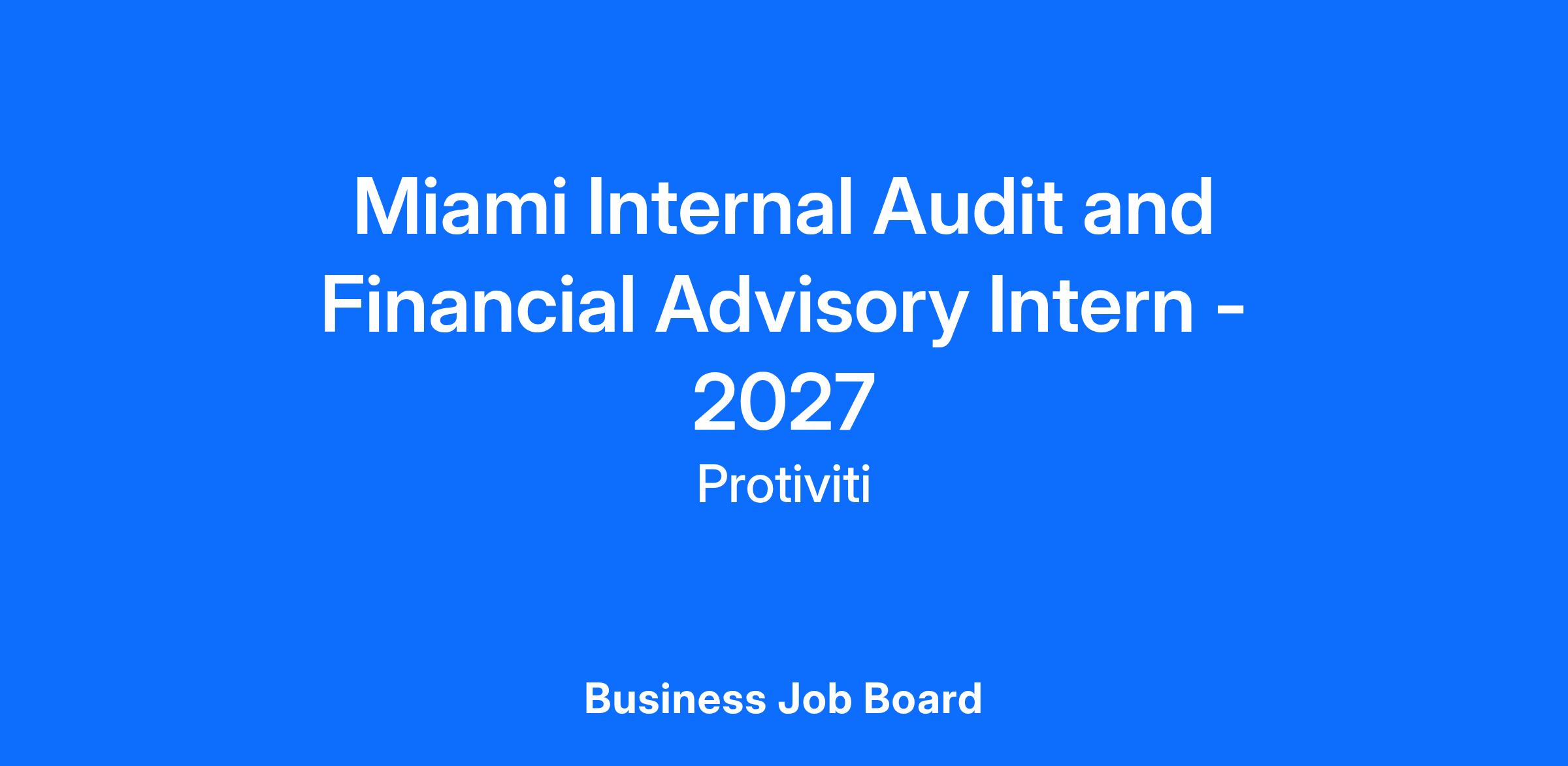Miami Internal Audit and Financial Advisory Intern - 2027LOCATION