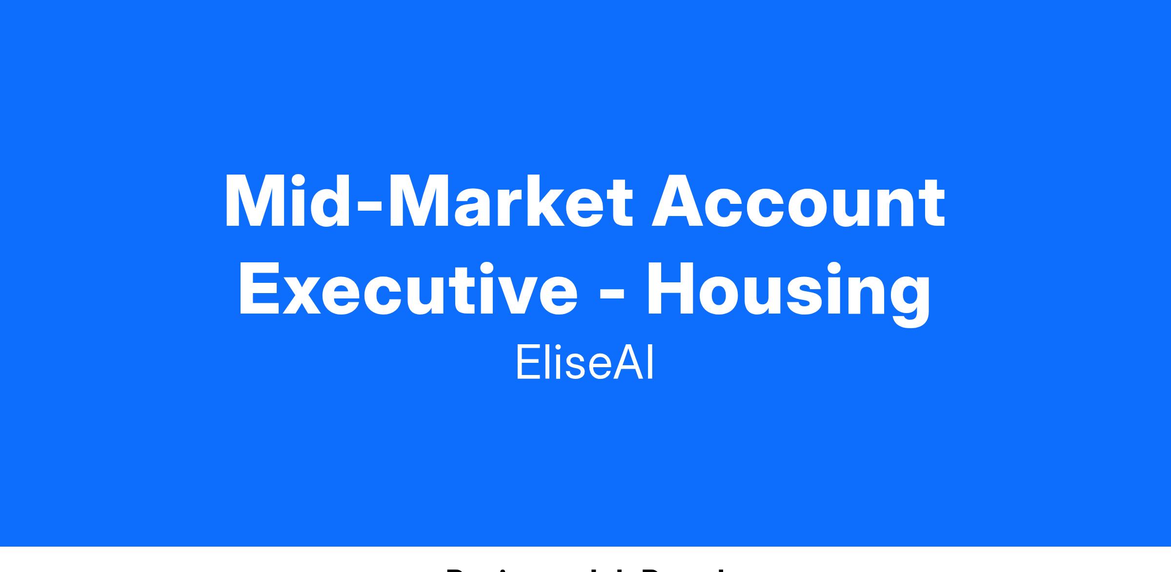 EliseAI is growing quickly and you’ll play a big part in building our new client base and help our customers fundamentally change their businesses. As a Mid-Market Account Executive, you will help identify, engage, and close new business for our mid-market multi-family segment while partnering closely with Customer Success to expand your existing portfolio.