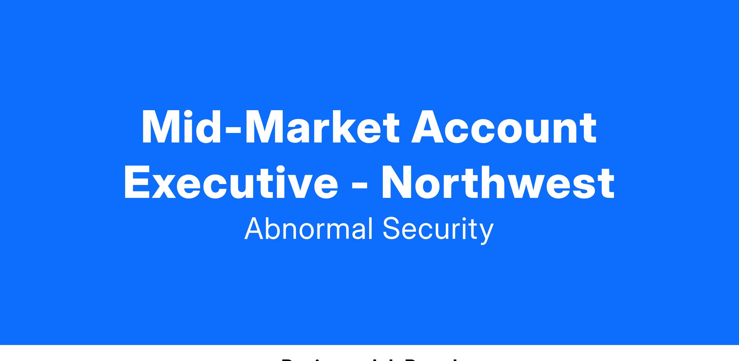 Abnormal Security is looking for a Mid-Market Account Executive to join our Sales org. The Mid-Market sales team is responsible for bringing new, small to medium-sized business into Abnormal’s portfolio of customers. This is a full-cycle sales role, working the deal cycle from prospect to close for accounts located in your territory. The ideal candidate will have a hunter mentality, experience in & a passion for cybersecurity, team selling experience, and be ready to hit the ground running.