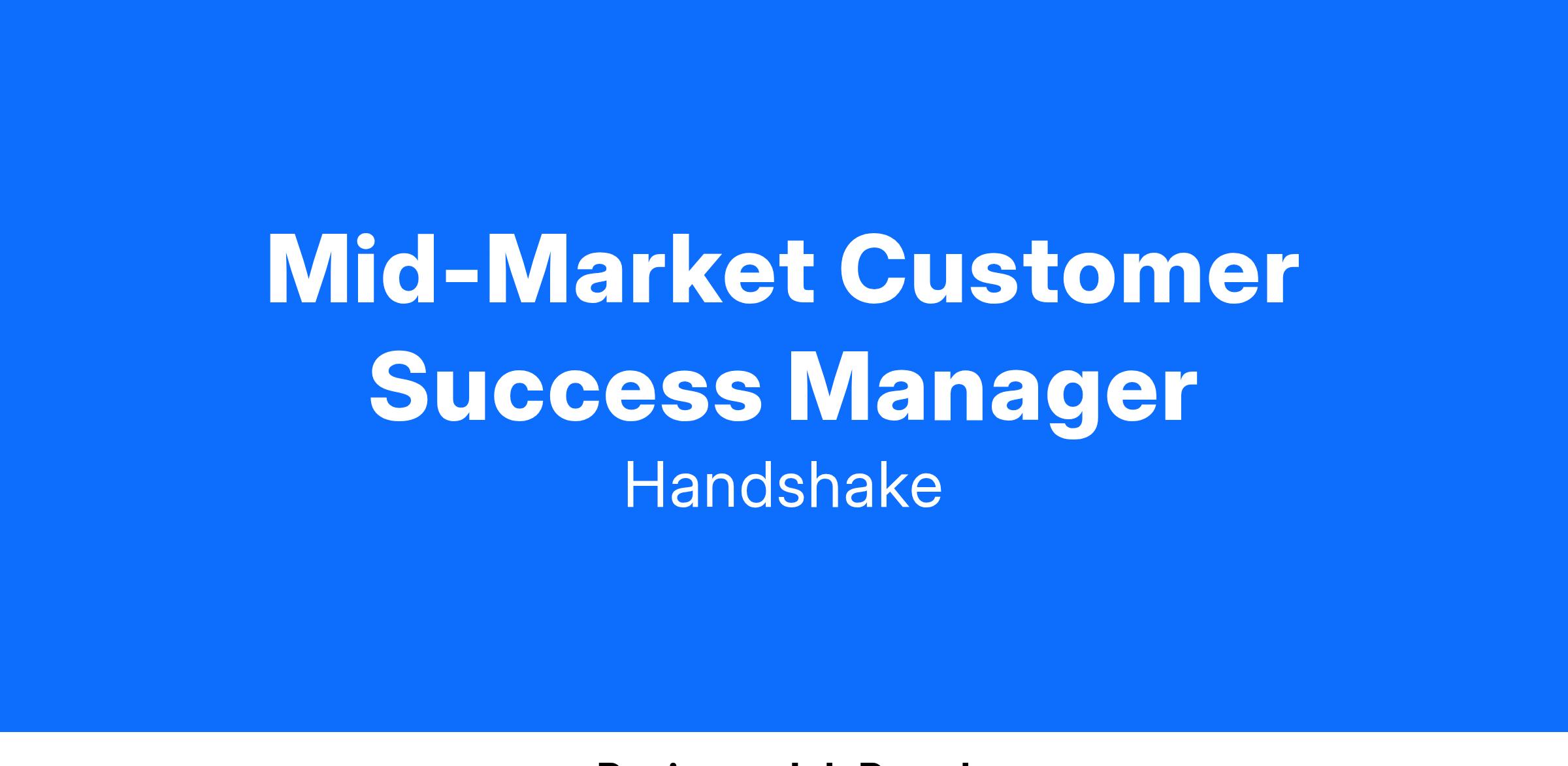 As a Mid-market Customer Success Manager, you'll partner with our mid-market employer partners to ensure they achieve their hiring goals, drive adoption across recruiting teams and make sure they are creative and strategic with early talent hiring.