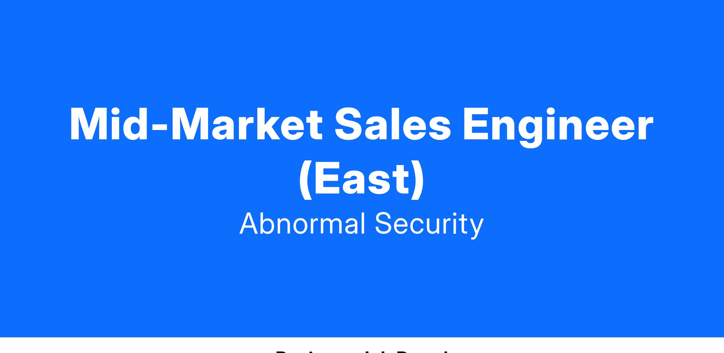 Abnormal Security is seeking an Mid-Market Sales Engineer (East) to join our growing Sales Engineering team. As a Mid-Market Sales Engineer, you will be our customer’s technical contact, and craft strategic business cases to win customers over & help them conquer their most intractable email security challenges.