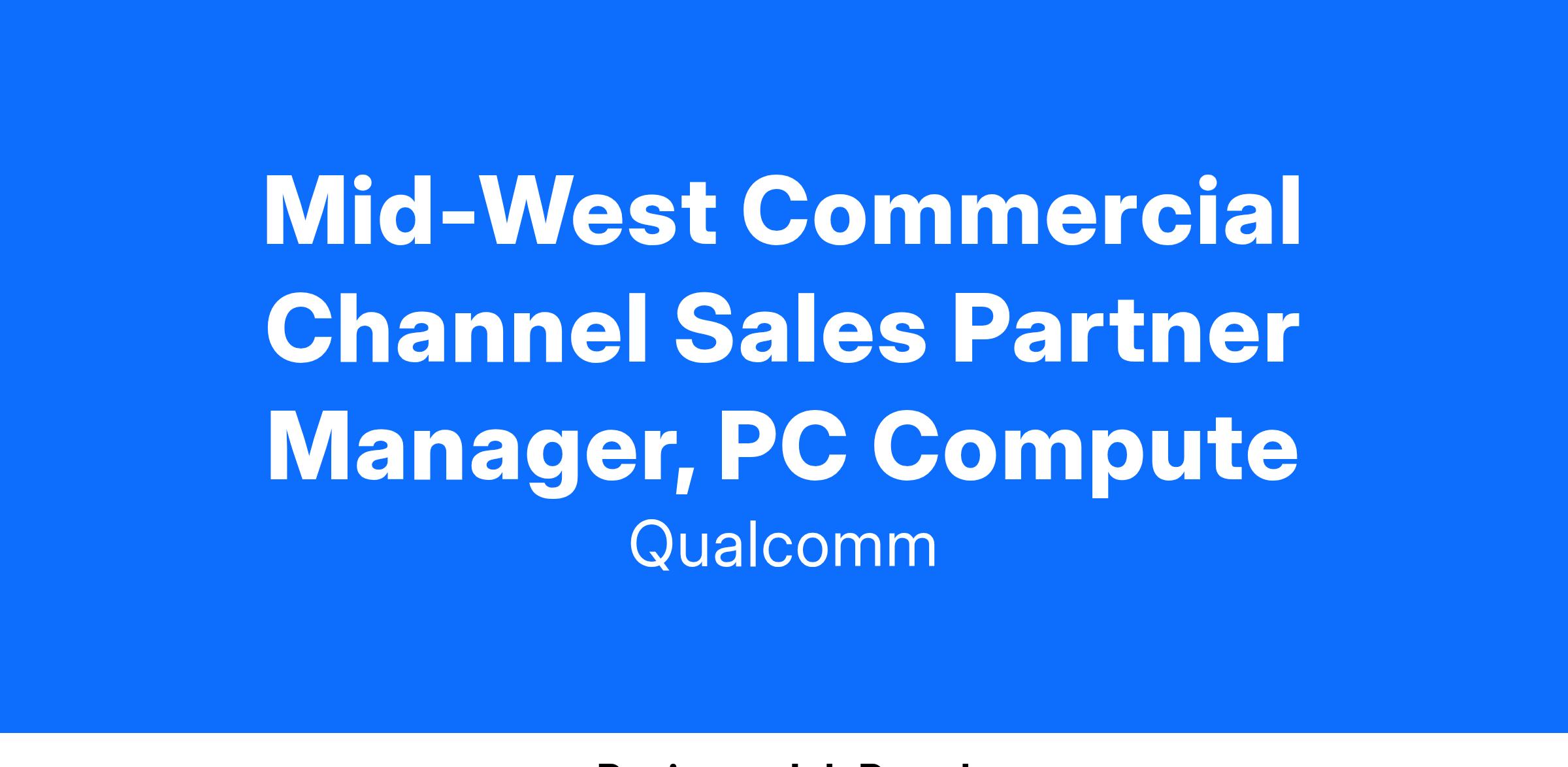 The Commercial Channel Sales Manager, will be responsible for managing and growing revenue with strategic commercial channel partners in Region/Country. This person will work closely with colleagues around the world and be responsible for creating the strategy and execution for driving the sale of Qualcomm products into compute accounts in the Region/Country market.