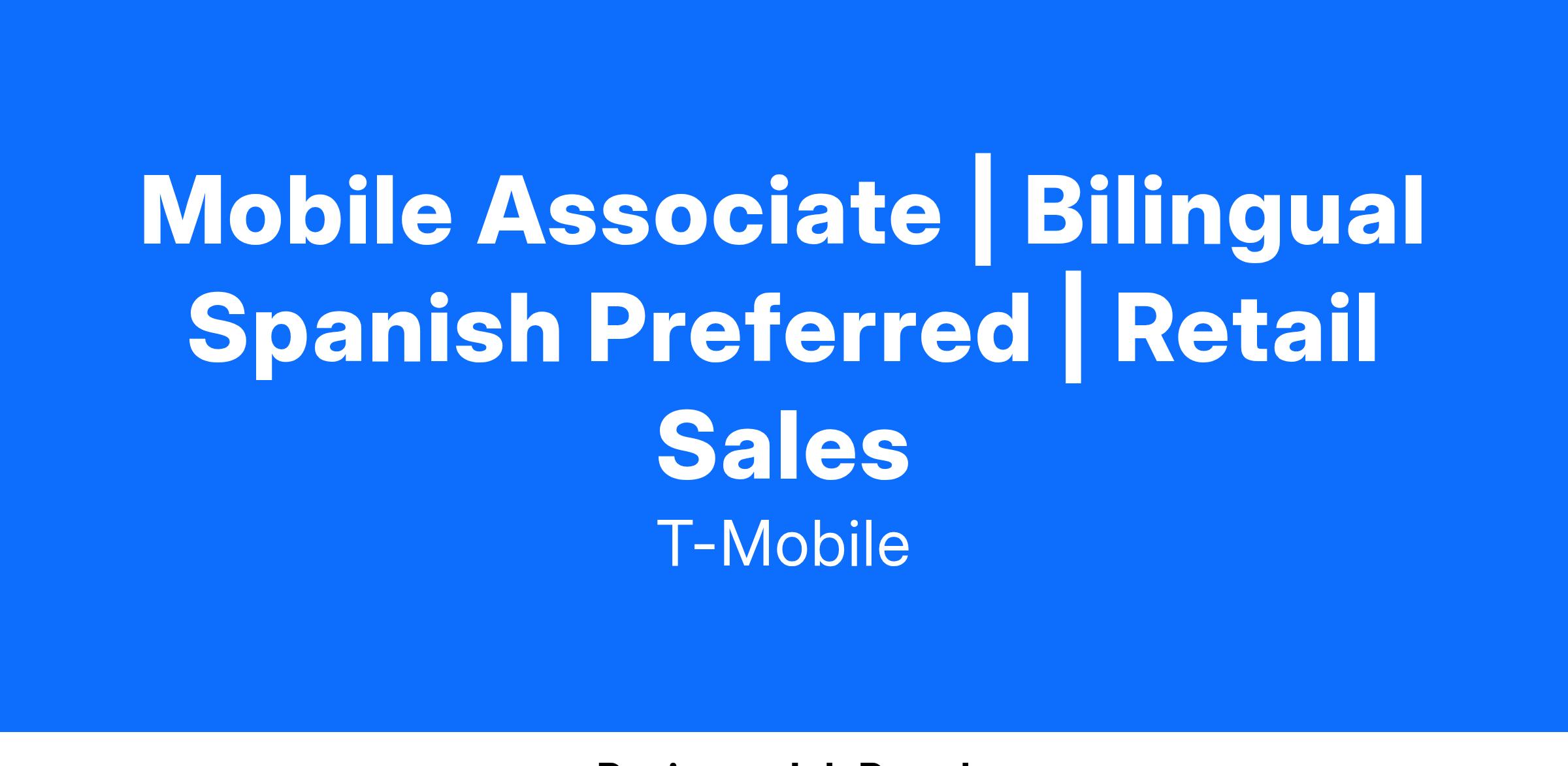 Mobile Associate | Bilingual Spanish Preferred | Retail Sales