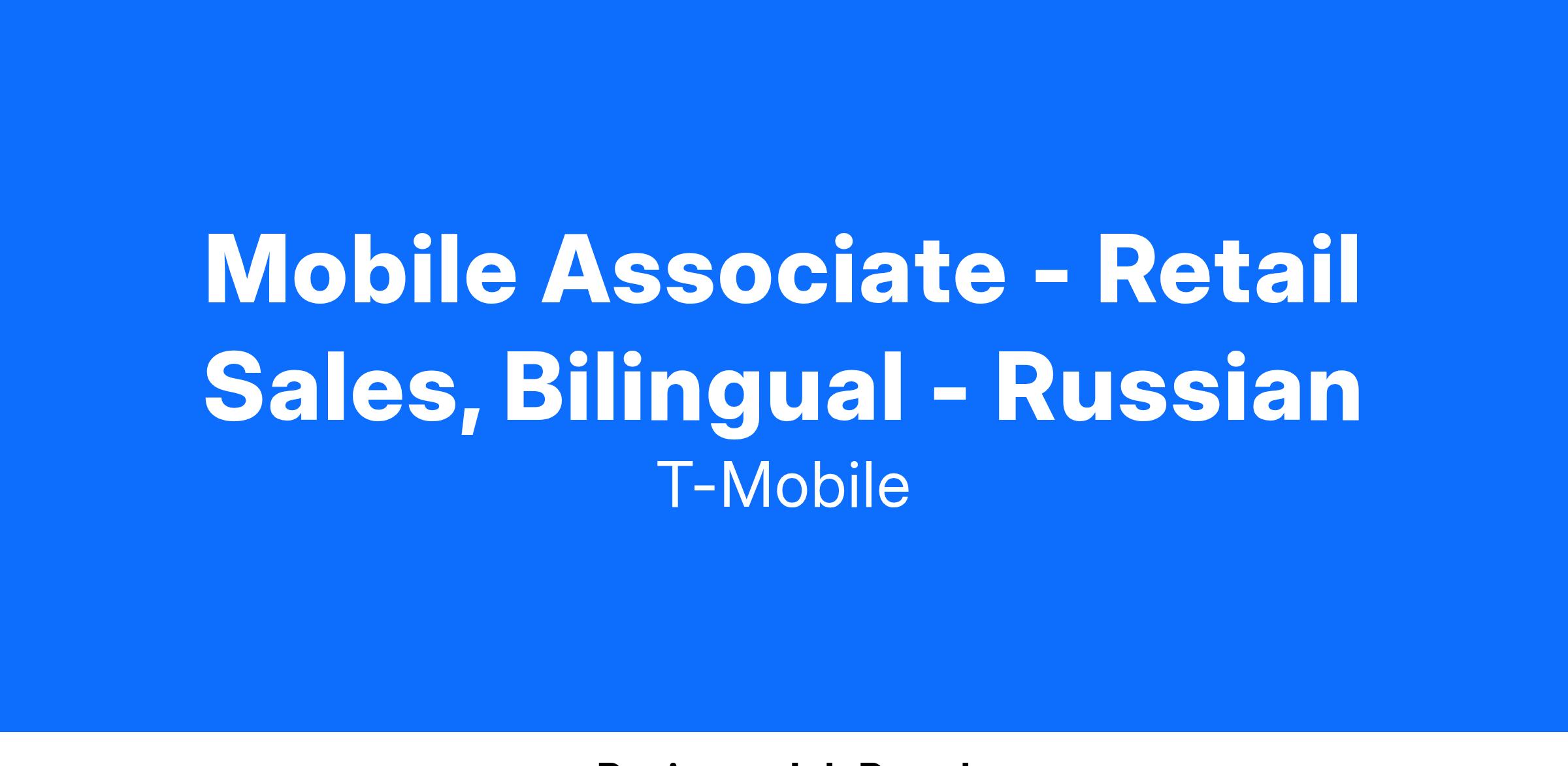 Mobile Associate - Retail Sales, Bilingual - Russian