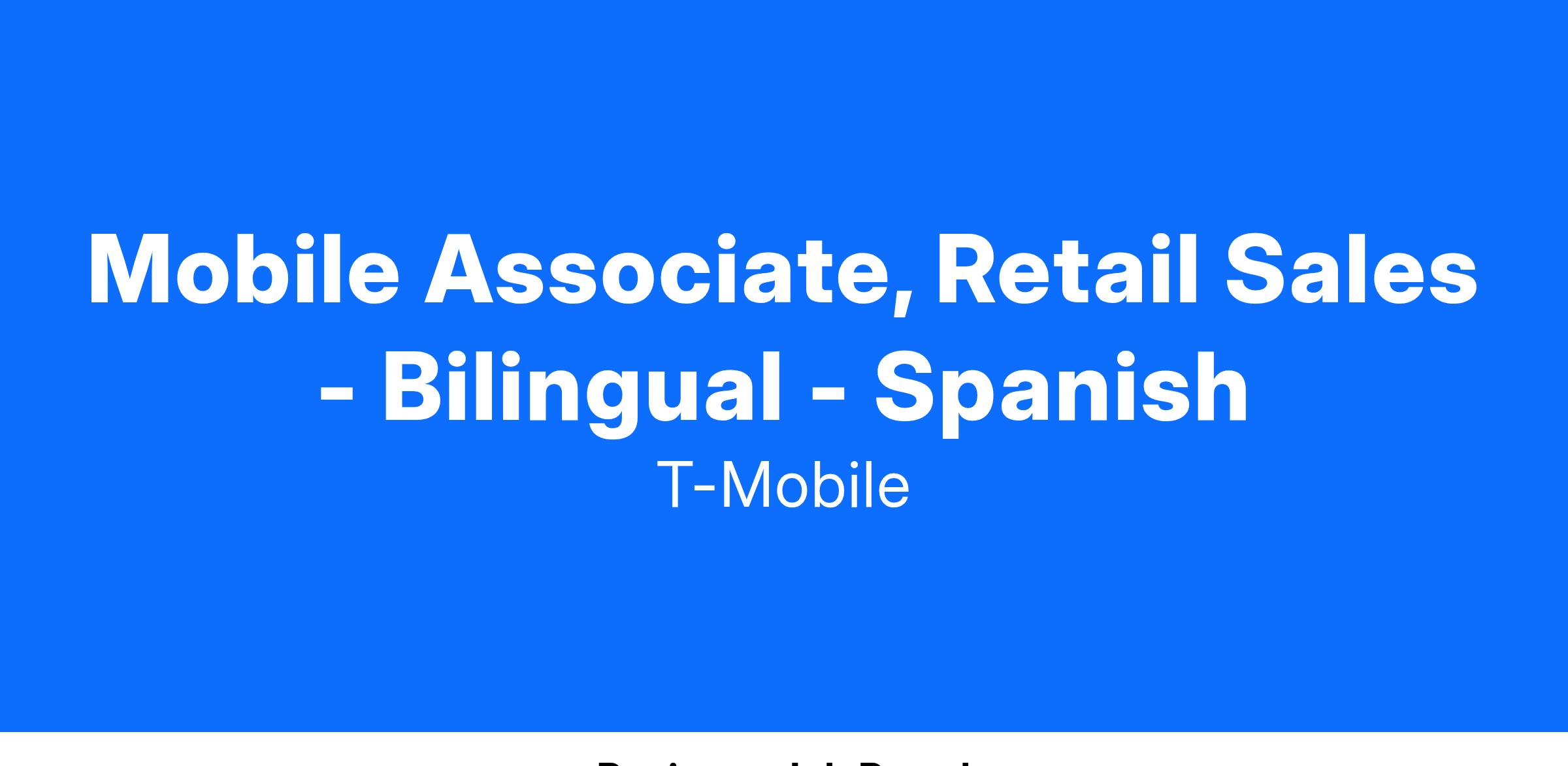 Mobile Associate, Retail Sales - Bilingual - Spanish