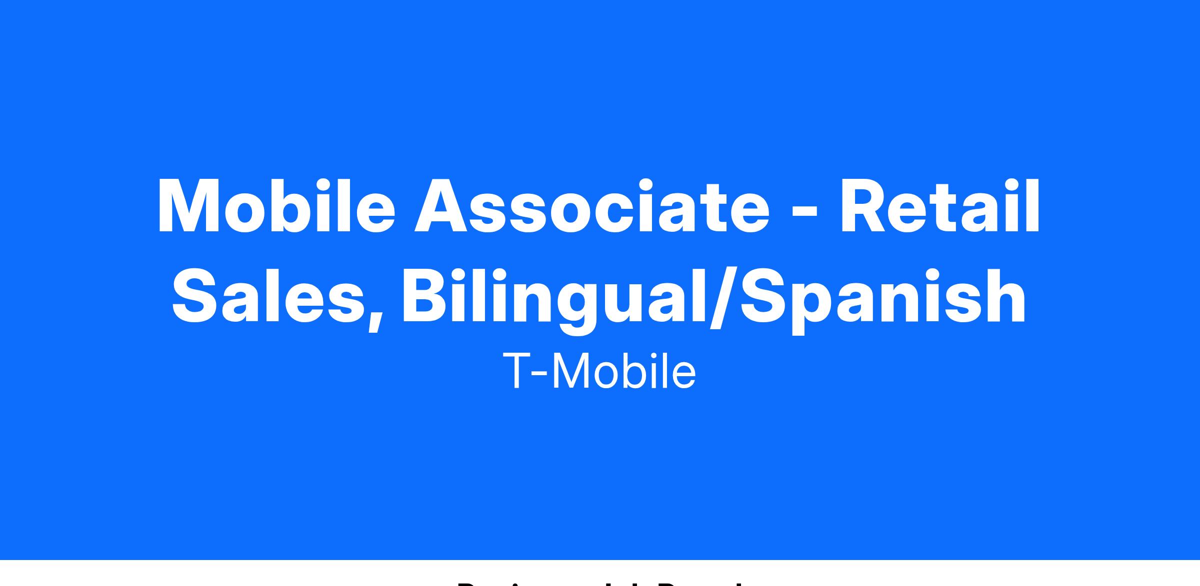 Mobile Associate - Retail Sales, Bilingual/Spanish