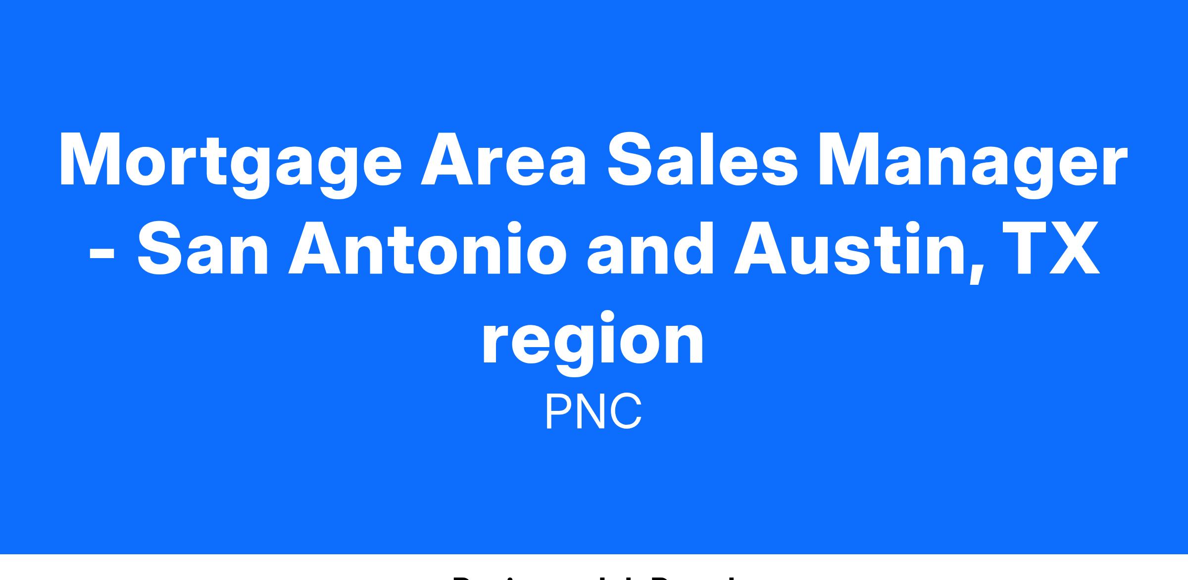 At PNC, our people are our greatest differentiator and competitive advantage in the markets we serve. We are all united in delivering the best experience for our customers. We work together each day to foster an inclusive workplace culture where all of our employees feel respected, valued and have an opportunity to contribute to the company’s success. As an Mortgage Area Sales Manager within PNC's Mortgage organization, you will be based in Austin/San Antonio, TX area to grow and support that territory.