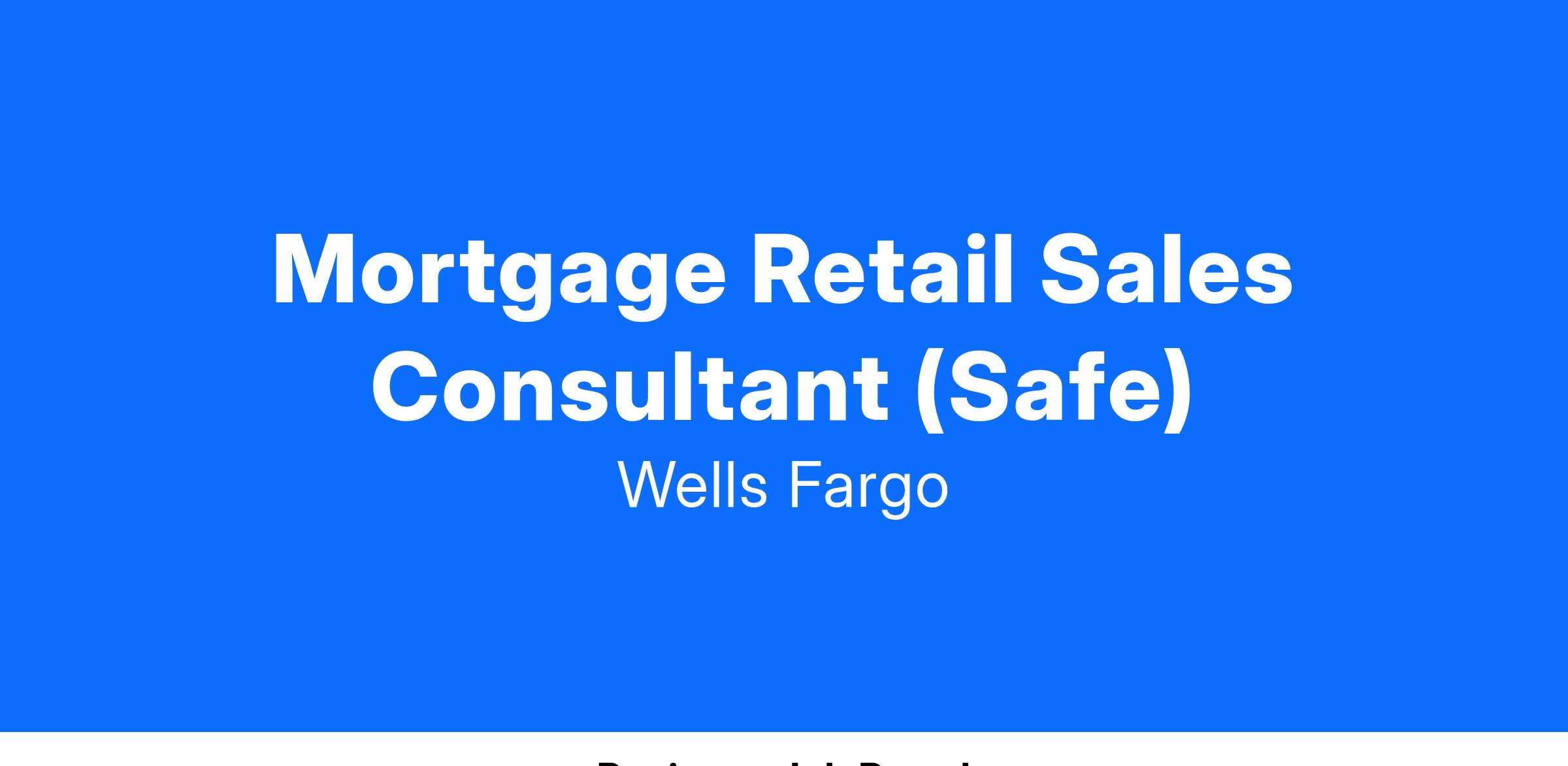 Wells Fargo is seeking an CA-WA Mortgage Retail Sales Consultant (SAFE) in Consumer Lending as part of Home Lending. Learn more about our career areas and lines of business at wellsfargojobs.com.