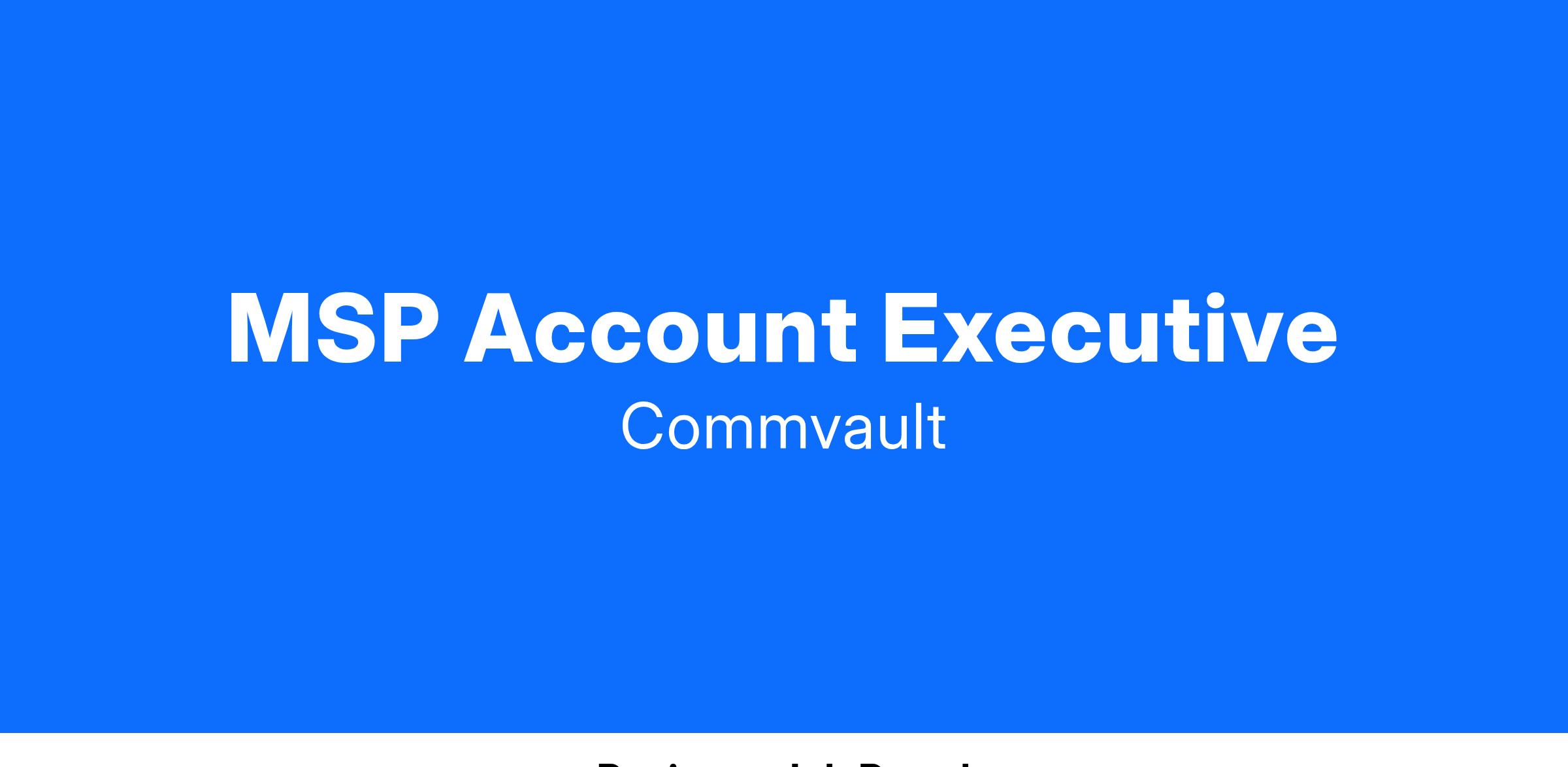 We have an exciting career opportunity to join Commvault in a high-impact sales role. This role will be responsible for driving sales in the Managed Service Provider (MSP) market space.
