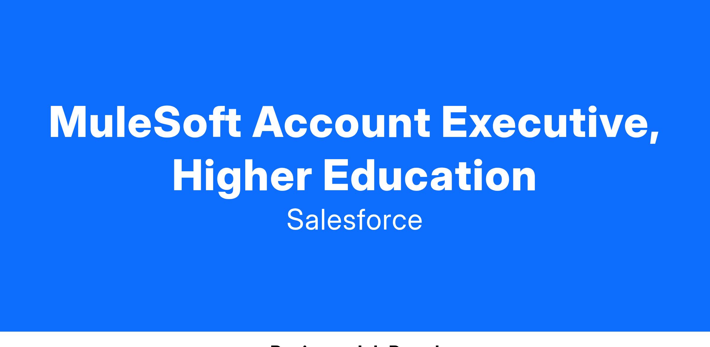 Our MuleSoft Account Executives focus on working with Higher Education institutions. You will have the opportunity to work in a fast paced team with various customers and receive personalized training and career opportunities.