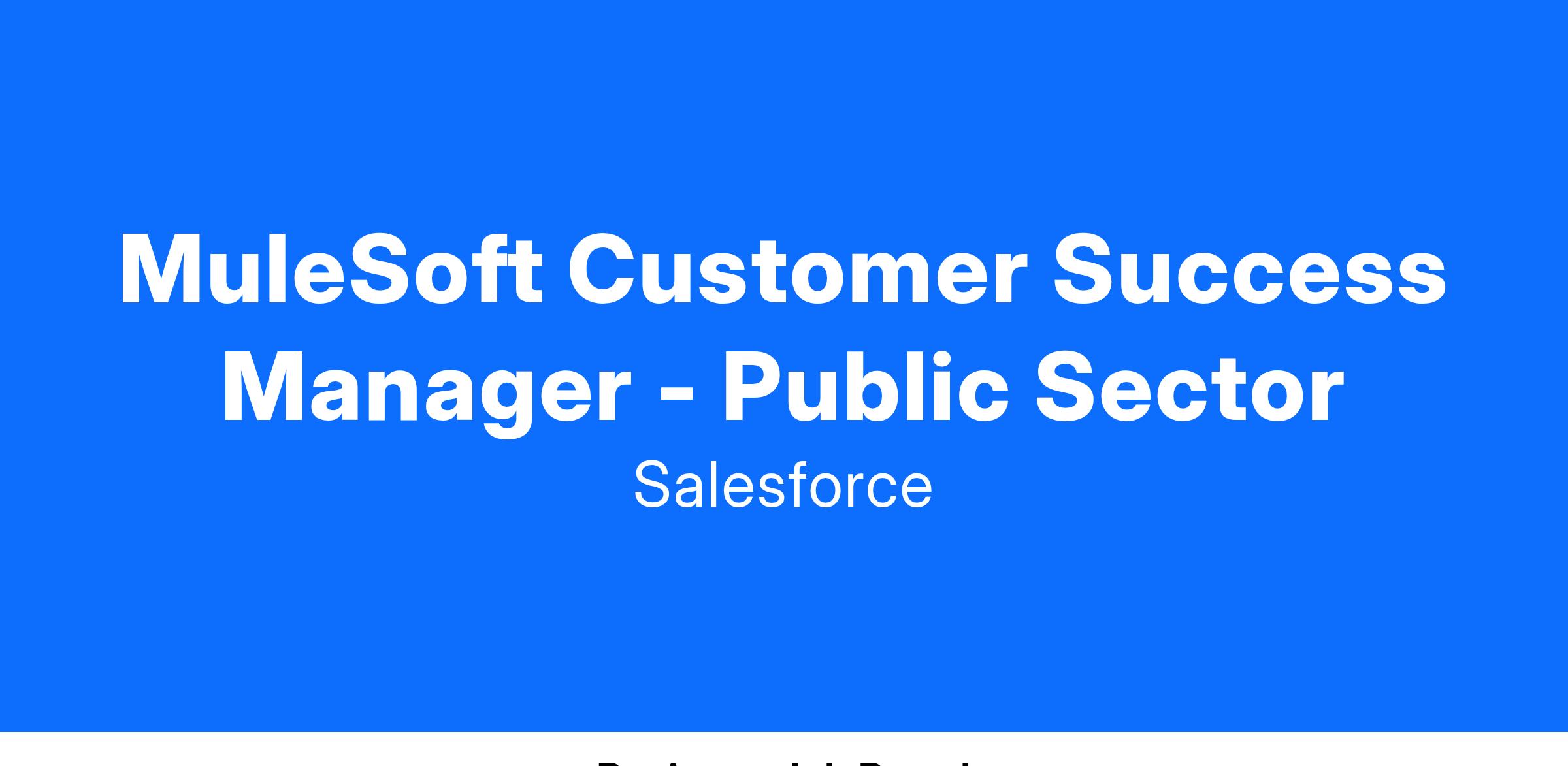 The MuleSoft Customer Success Manager in the Public Sector operating unit supports federal civilian signature customers. They understand that supporting government customers requires a comprehensive understanding of government processes, regulations, and compliance requirements. They must possess US Citizenship as they will support government agencies using GovCloud. Strong problem-solving abilities are necessary for navigating public sector challenges and finding innovative solutions.