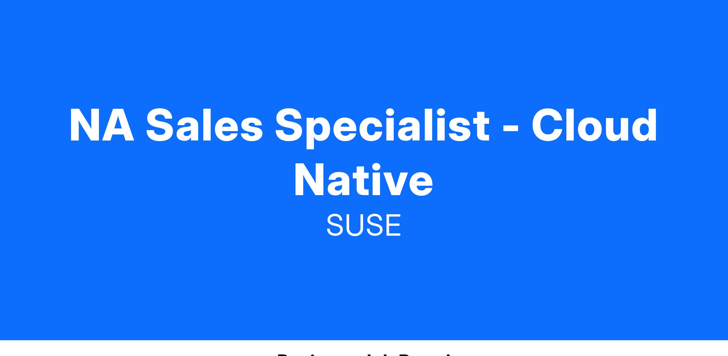 NA Sales Specialist - Cloud Native