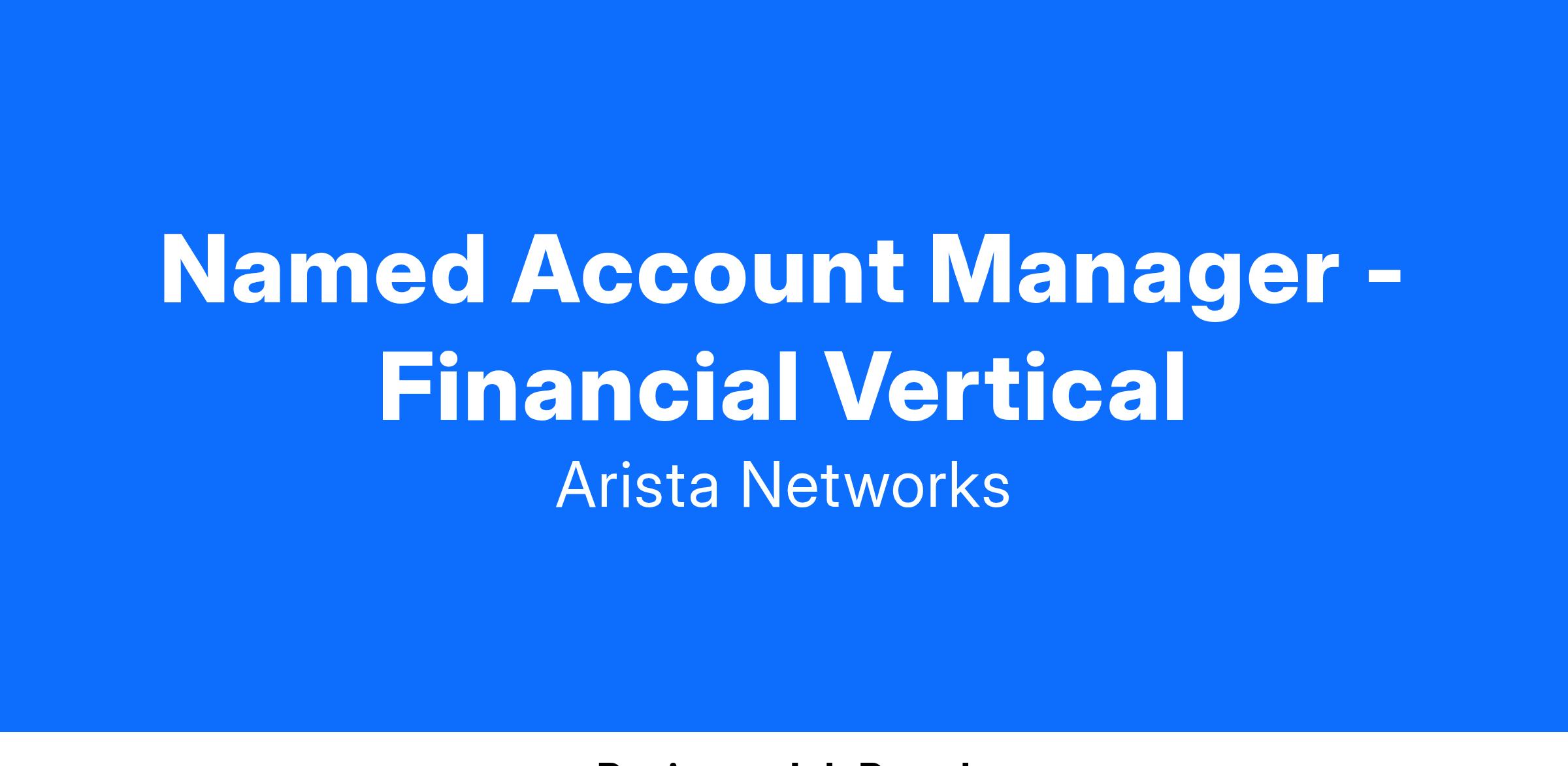 We are seeking an Named Account Manager to join our growing Sales organization. This role will be instrumental in growing the Arista brand within both existing and new financial vertical accounts in the NYC metro area.