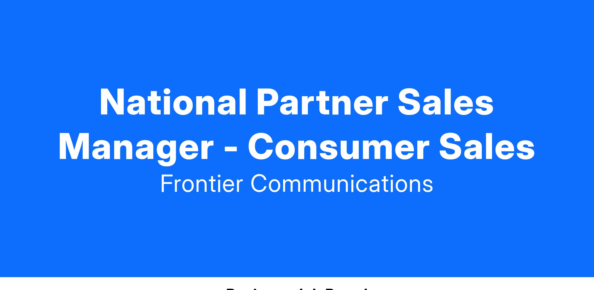 National Partner Sales Manager - Consumer Sales