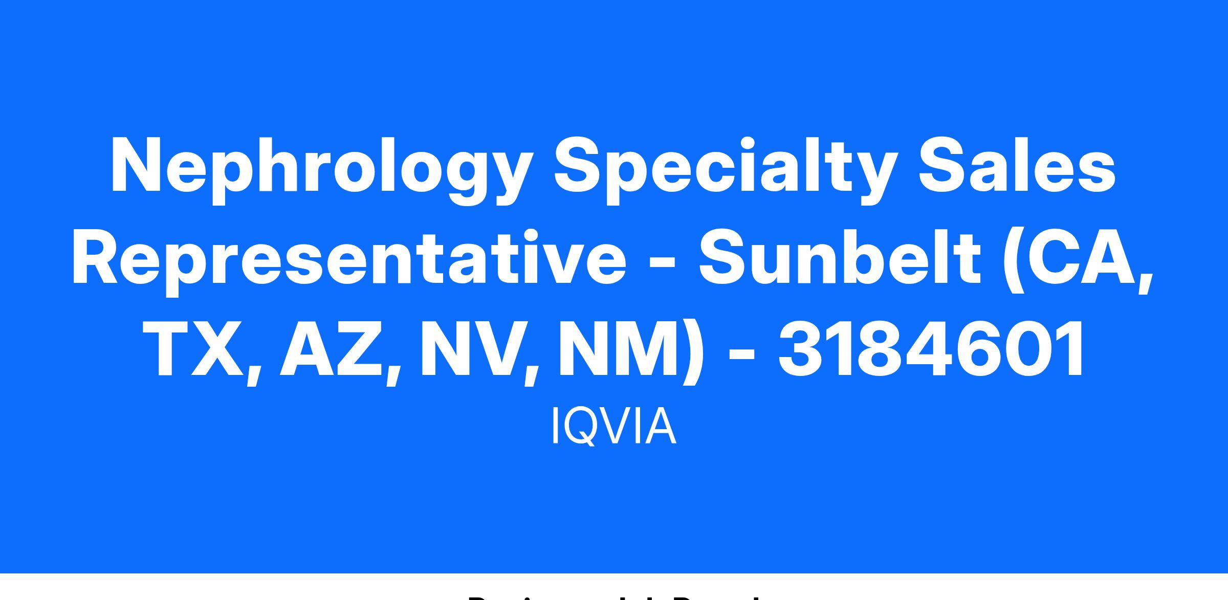 Nephrology Specialty Sales Representative - Sunbelt (CA, TX, AZ, NV, NM) - 3184601