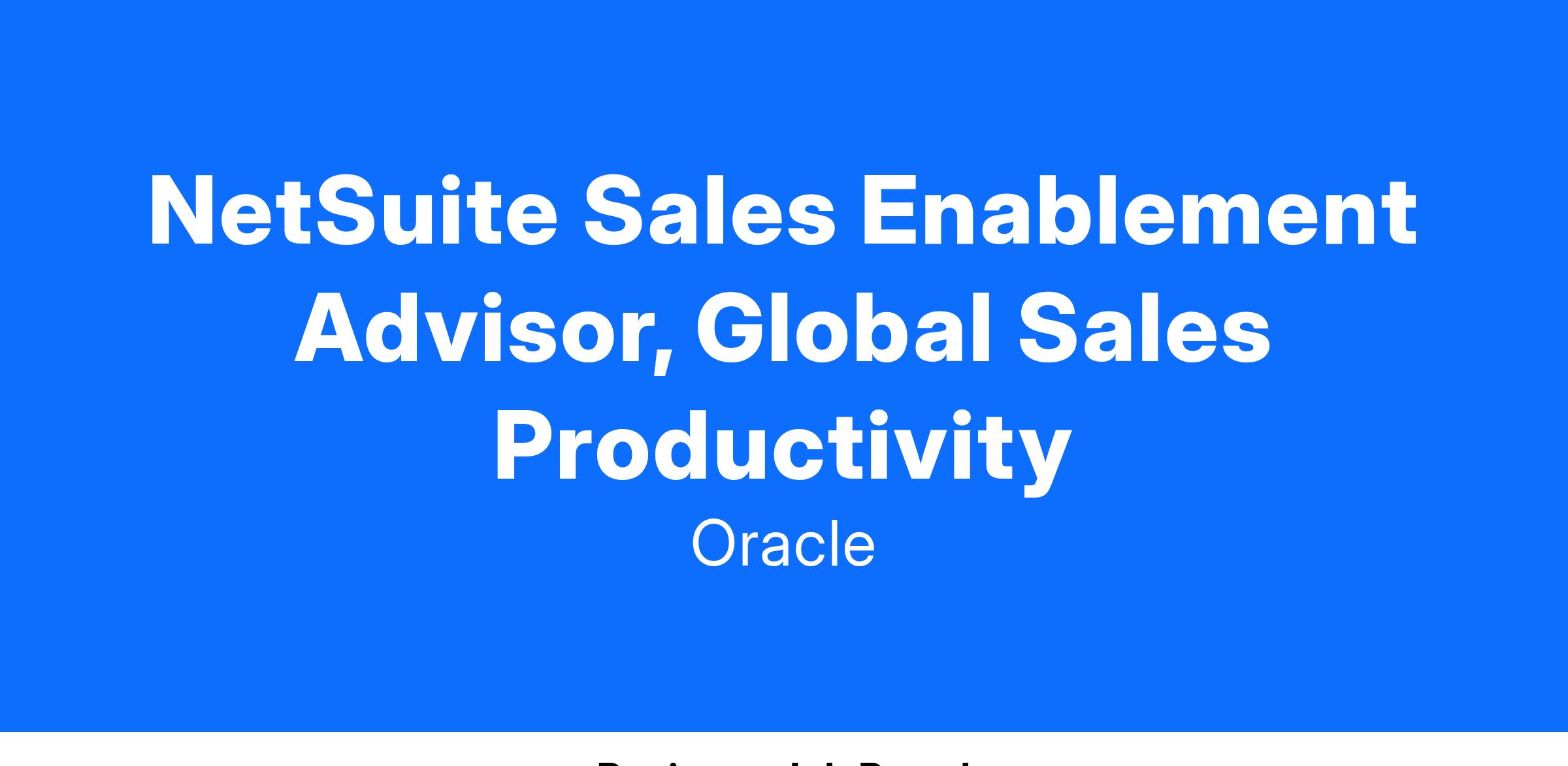 Sales Advisor, Global Sales Productivity (NetSuite)