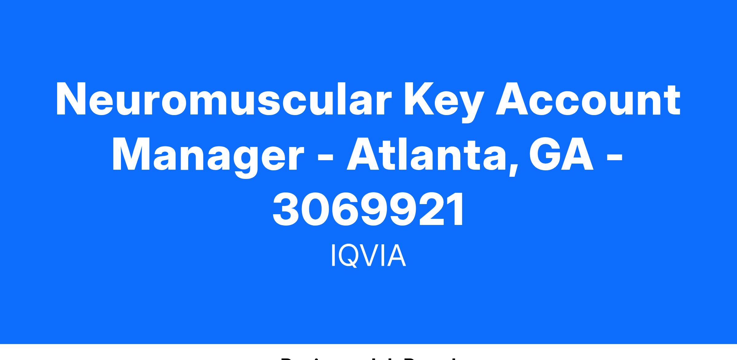 Neuromuscular Key Account Manager - Atlanta, GA - 3069921
