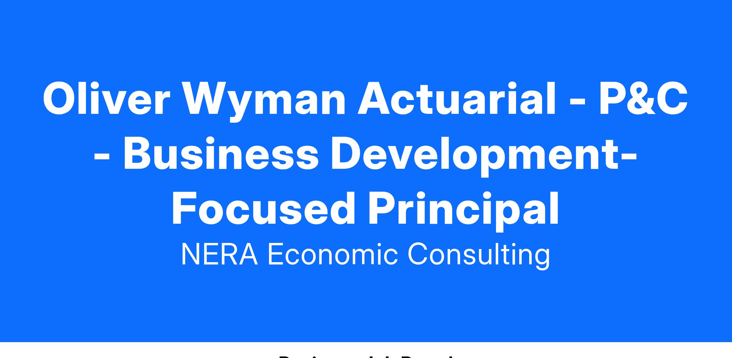 Oliver Wyman is currently seeking an experienced consultant to join the Property & Casualty Actuarial Consulting Practice as a Principal. This position will be required to help develop the business development plan with the regional leader for a targeted expansion, and to help the Region Leader and Central Zone Principals execute the growth strategy. The candidate will also have significant impact on the engagement and interaction with Oliver Wyman’s clients, which include large self-insured corporations, captive insurance companies, (re)insurers, investment firms, state regulators, and healthcare providers.