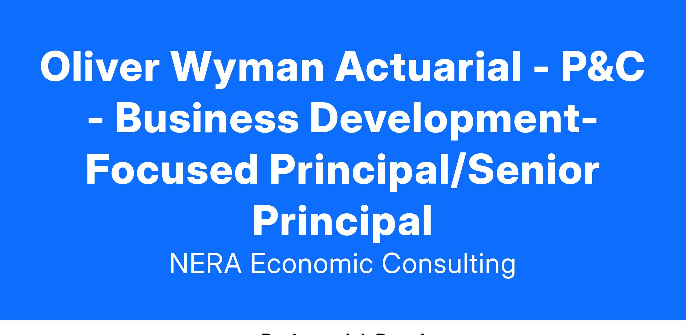 Oliver Wyman is currently seeking an experienced consultant to join the Property & Casualty Actuarial Consulting Practice as a Principal/Senior Principal.