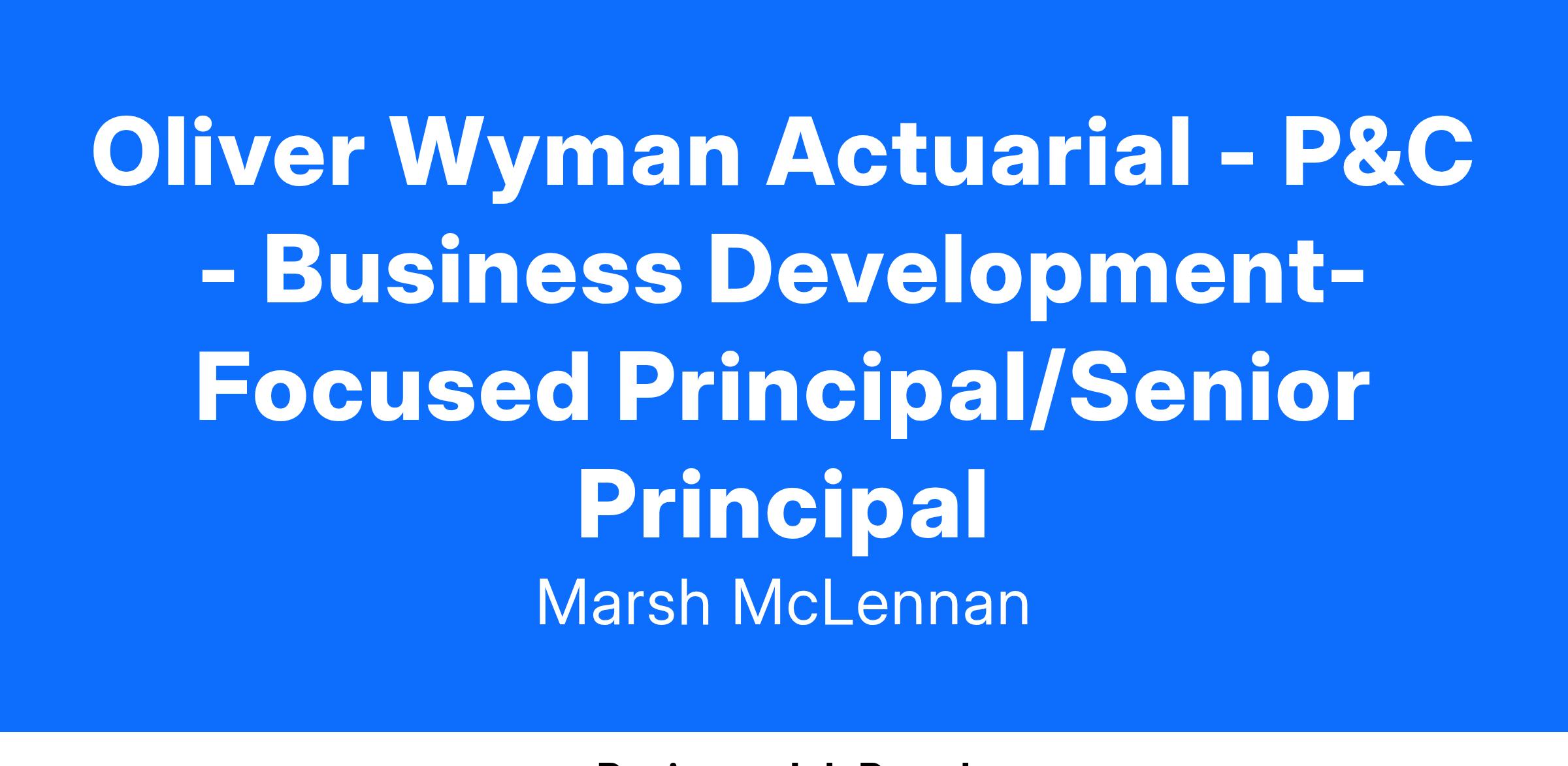 Oliver Wyman is currently seeking an experienced consultant to join the Property & Casualty Actuarial Consulting Practice as a Principal/Senior Principal.