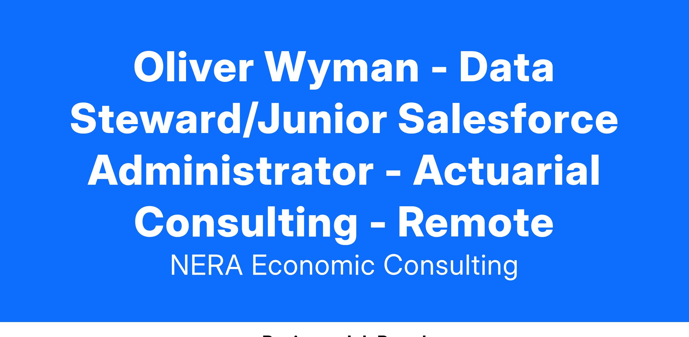 Oliver Wyman is looking for a proactive and detail-oriented individual who thrives in a fast-paced environment and has a strong understanding of data management principles. In this role, you will be responsible for ensuring the accuracy, completeness, and reliability of our organization's data assets and will be principally responsible for assisting our Salesforce Platform Manager with the maintenance of our Salesforce platform.
