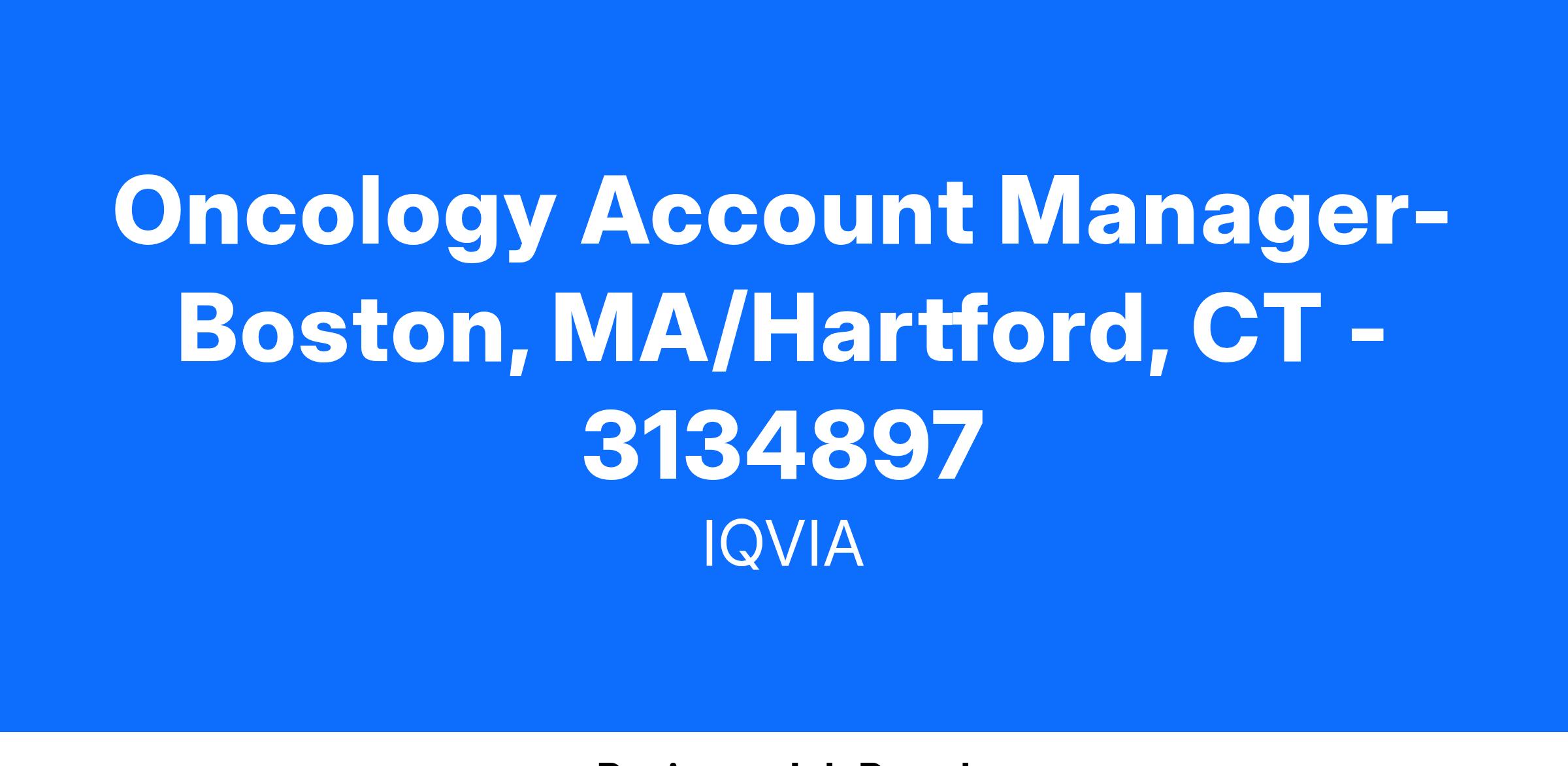 Oncology Account Manager- Boston, MA/Hartford, CT - 3134897