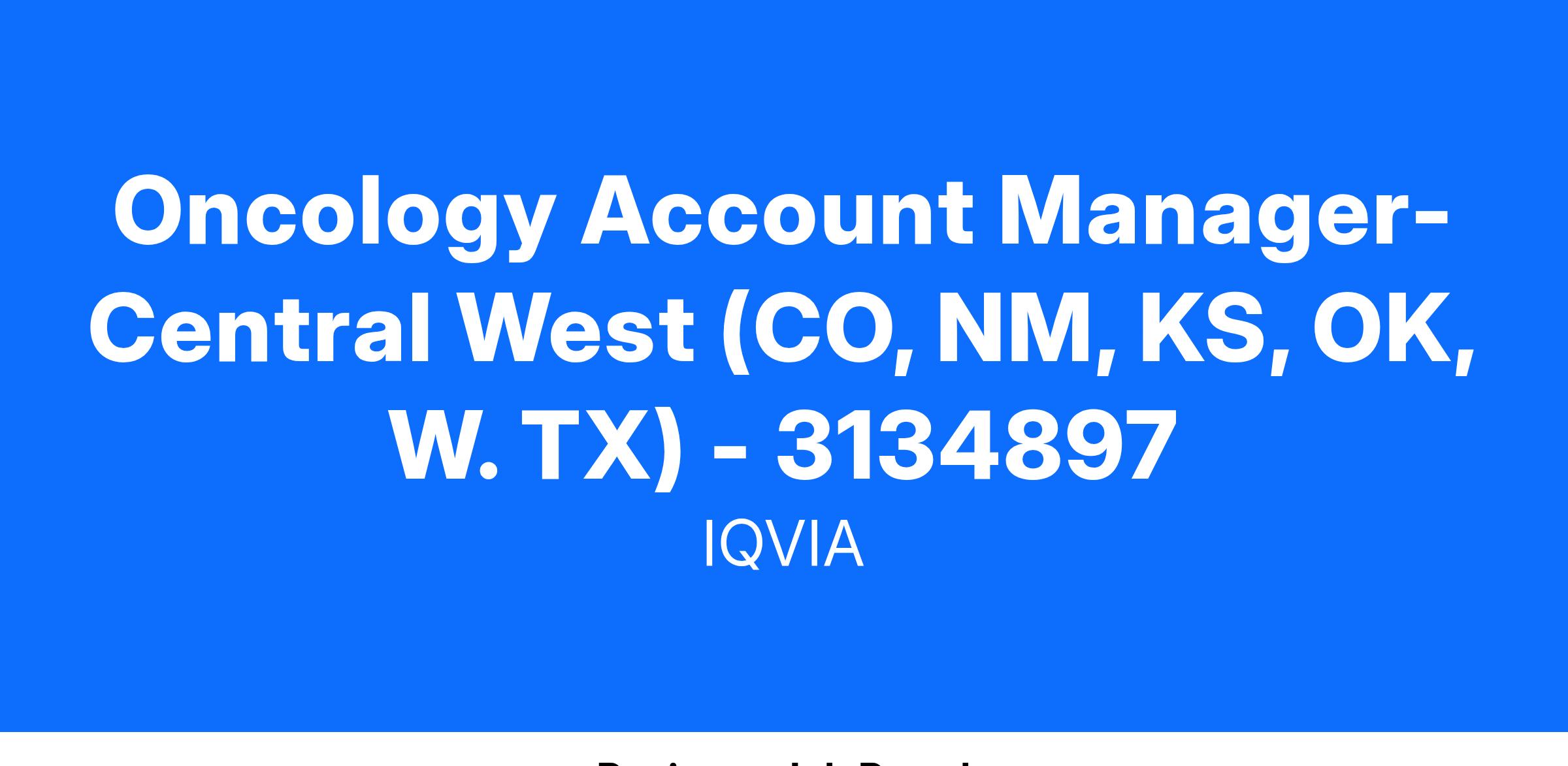 Oncology Account Manager- Central West (CO, NM, KS, OK, W. TX) - 3134897
