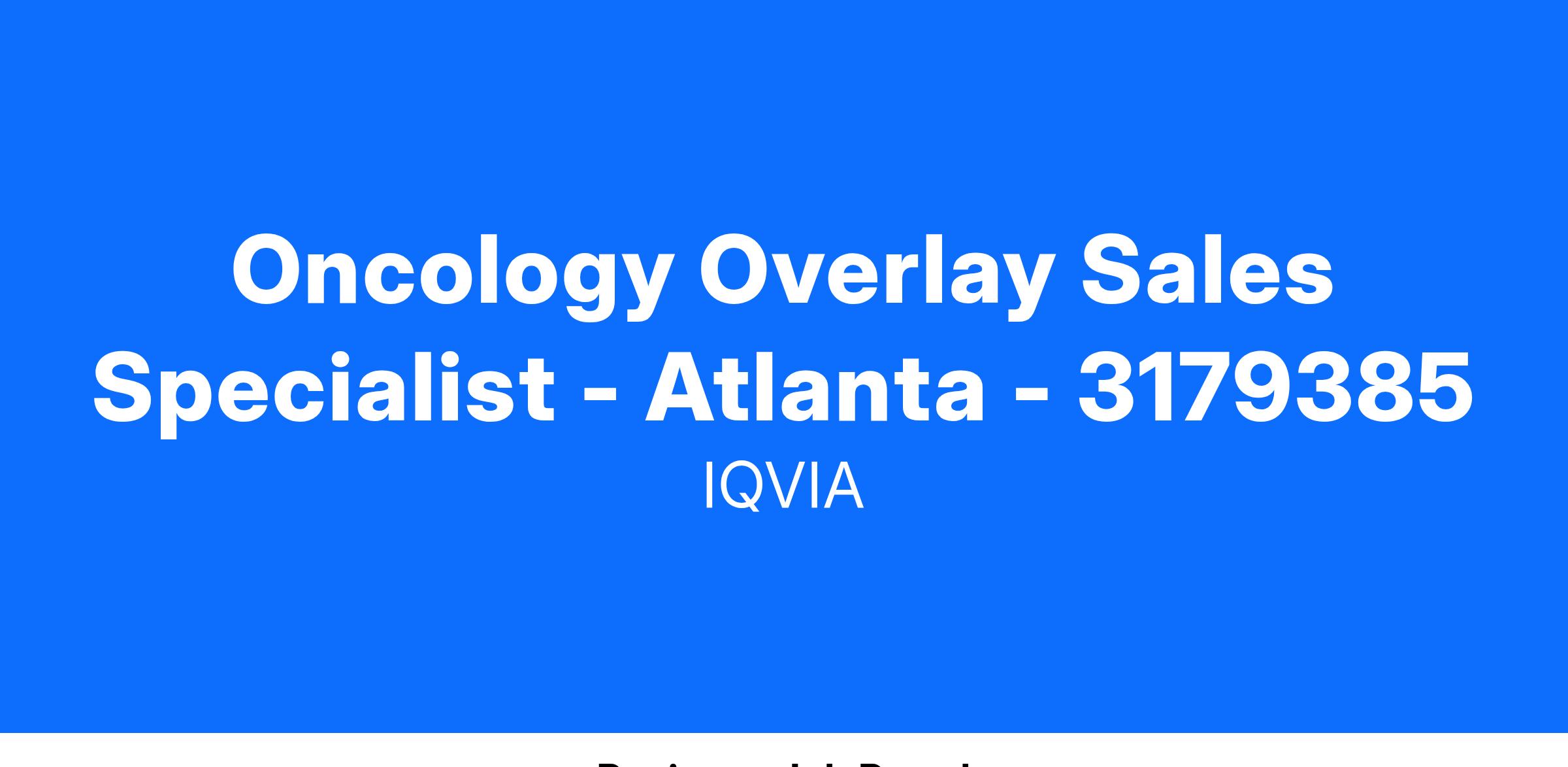 Oncology Overlay Sales Specialist - Atlanta - 3179385