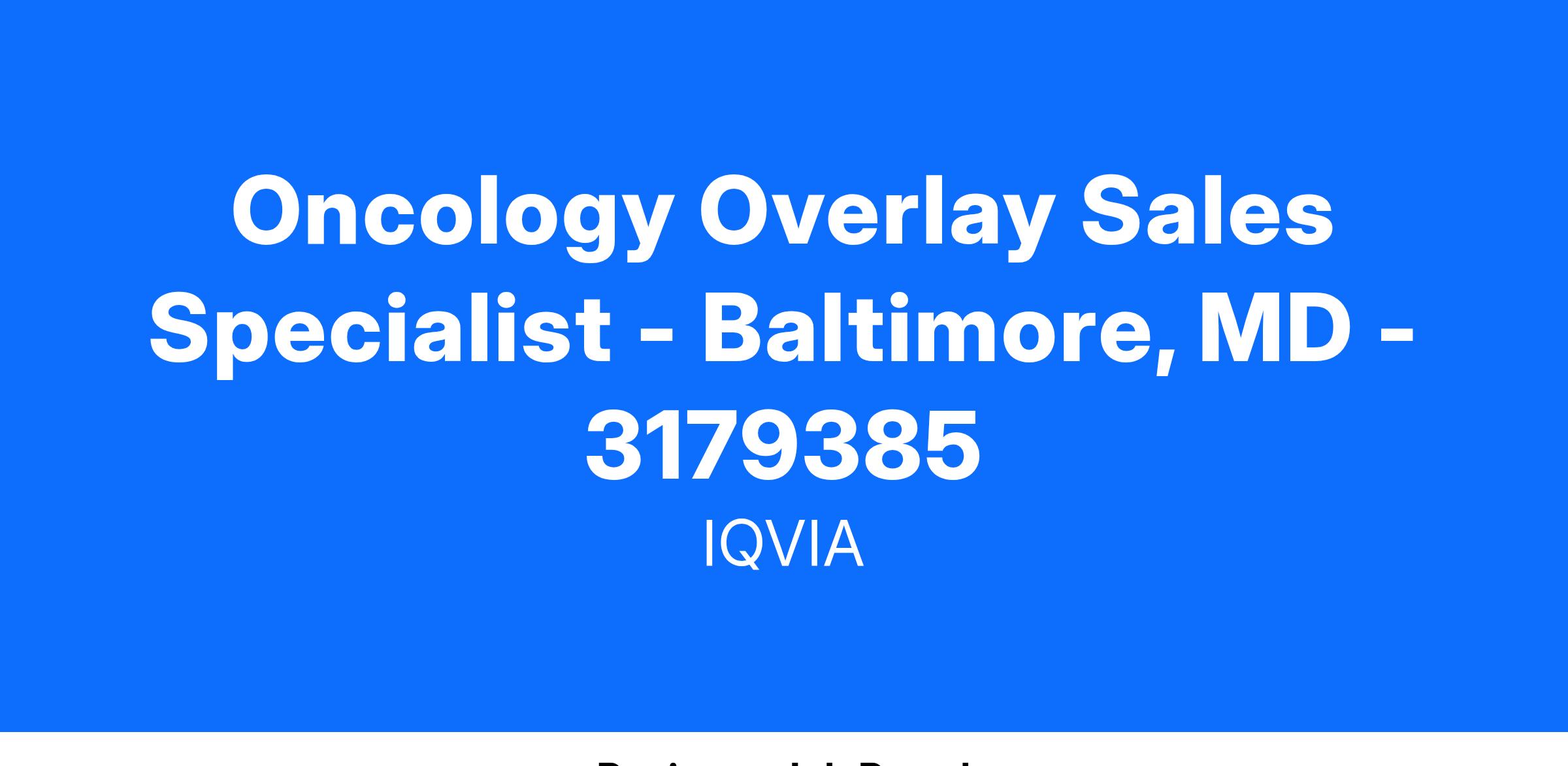 Oncology Overlay Sales Specialist - Baltimore, MD - 3179385