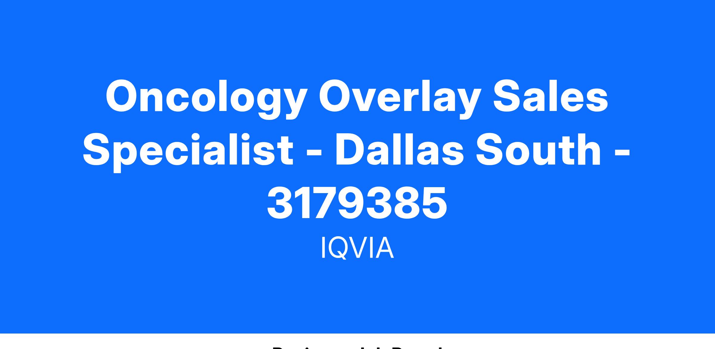 Oncology Overlay Sales Specialist - Dallas South - 3179385