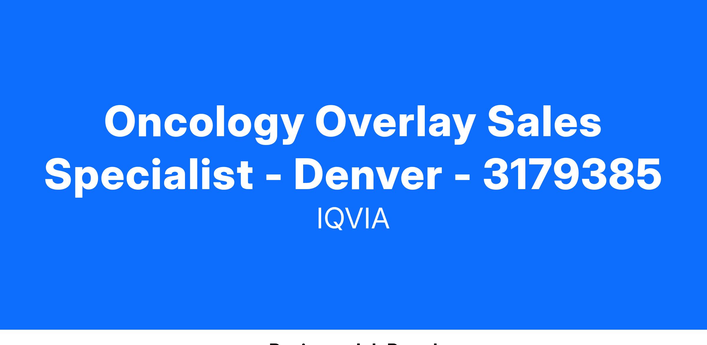 Oncology Overlay Sales Specialist - Denver - 3179385
