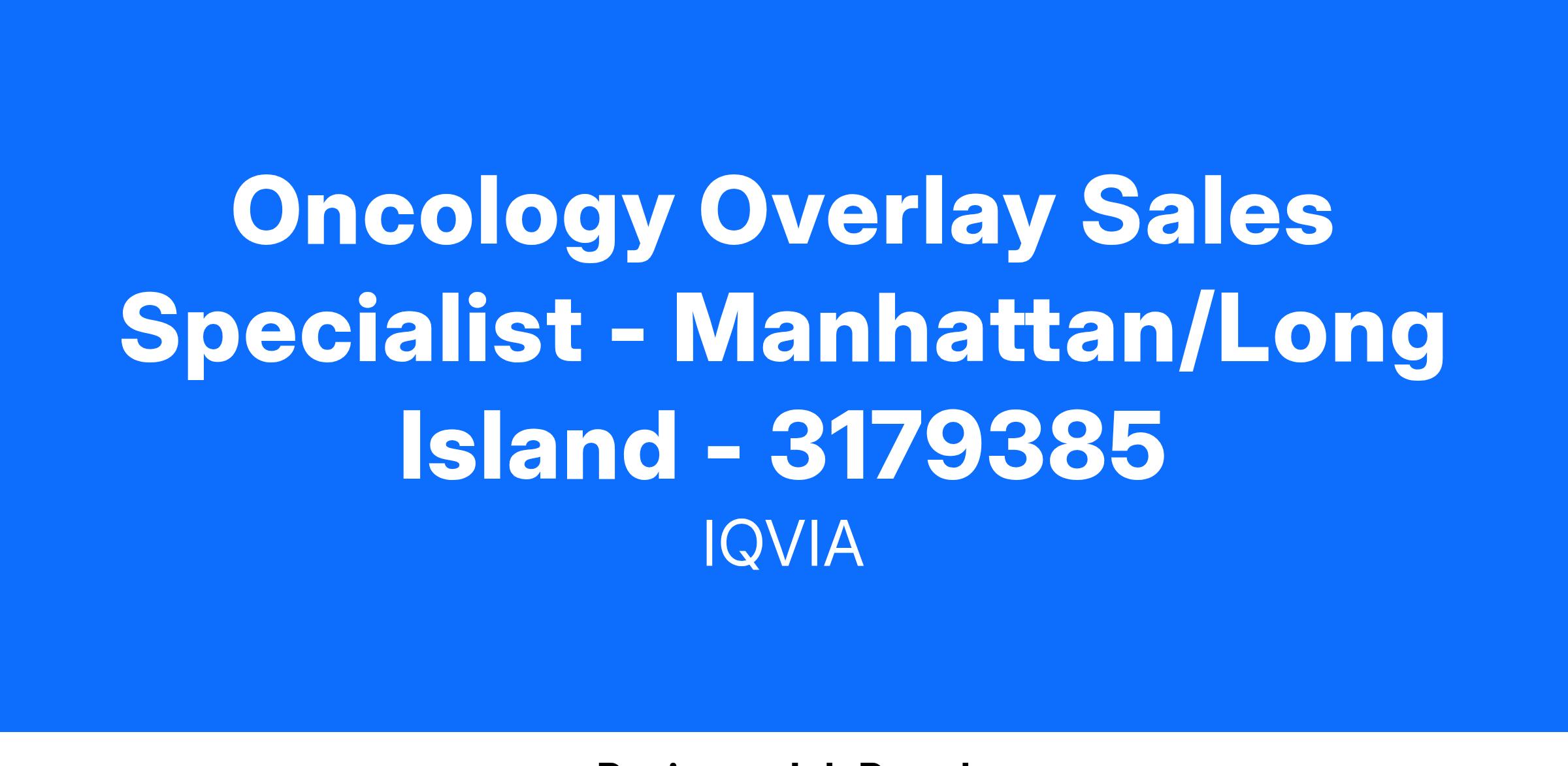 Oncology Overlay Sales Specialist - Manhattan/Long Island - 3179385
