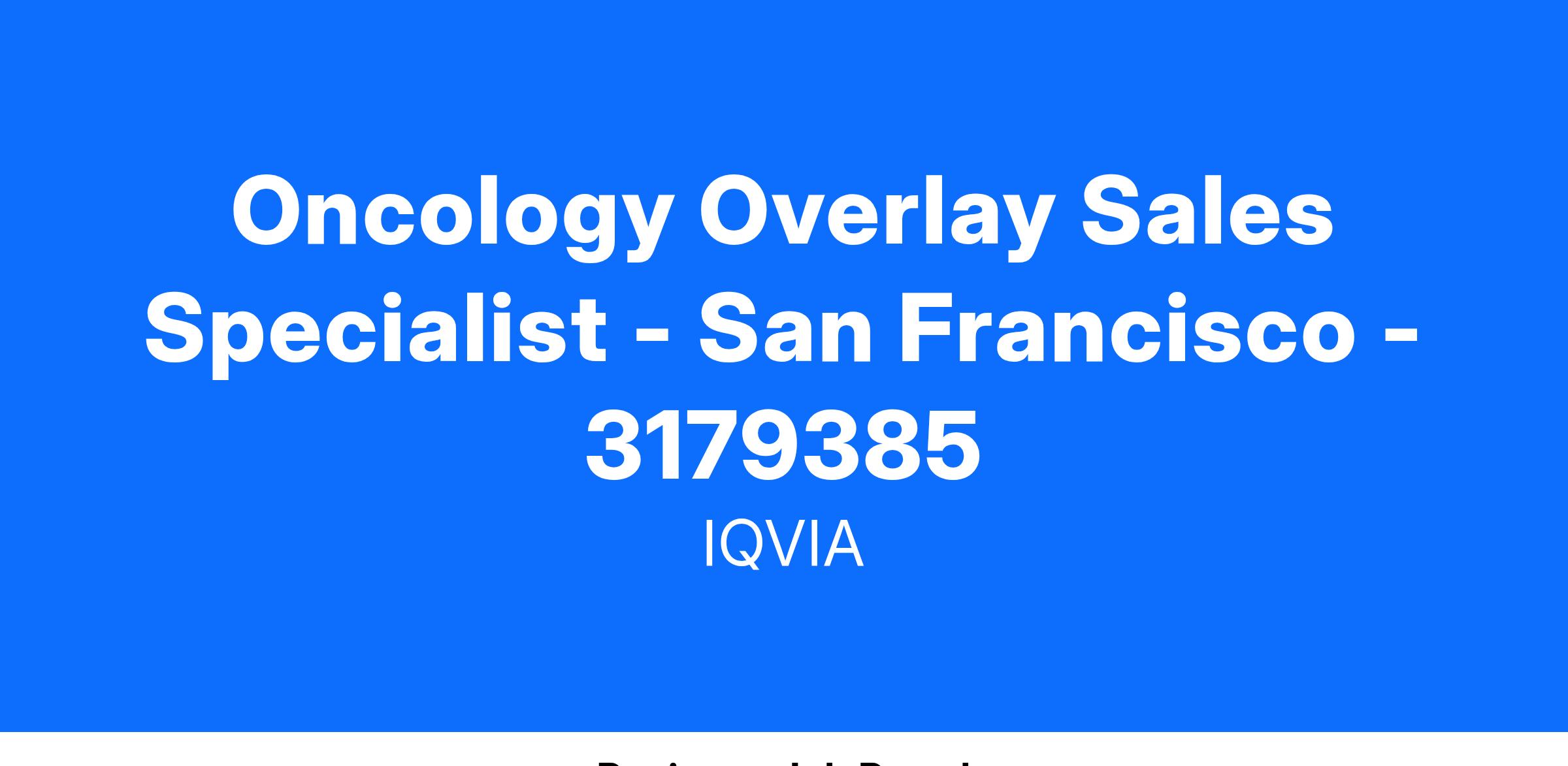 Oncology Overlay Sales Specialist - San Francisco - 3179385
