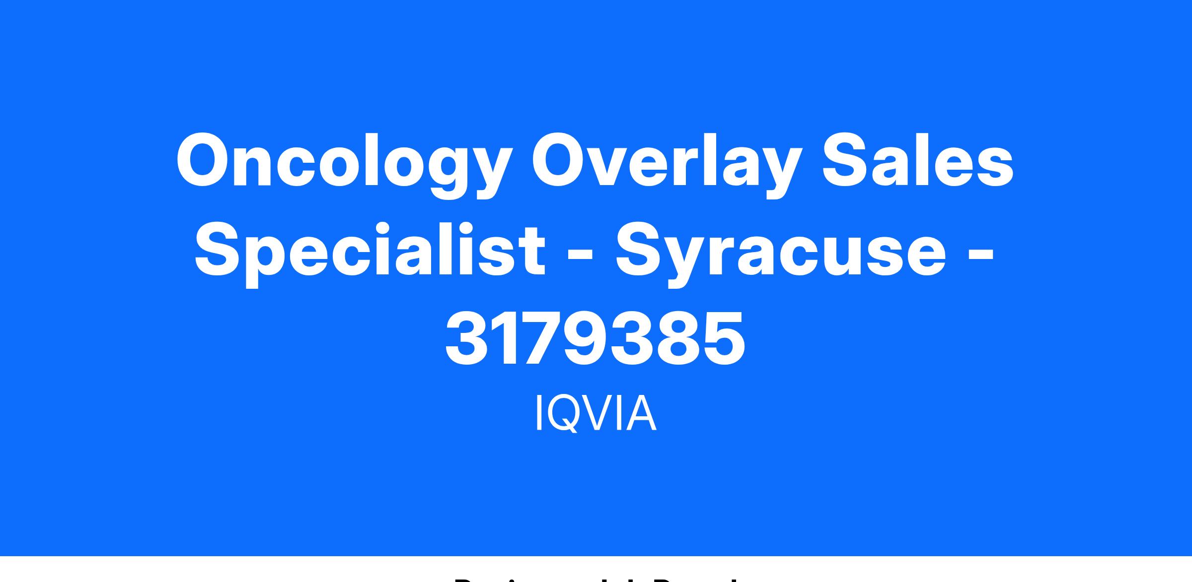 Oncology Overlay Sales Specialist - Syracuse - 3179385