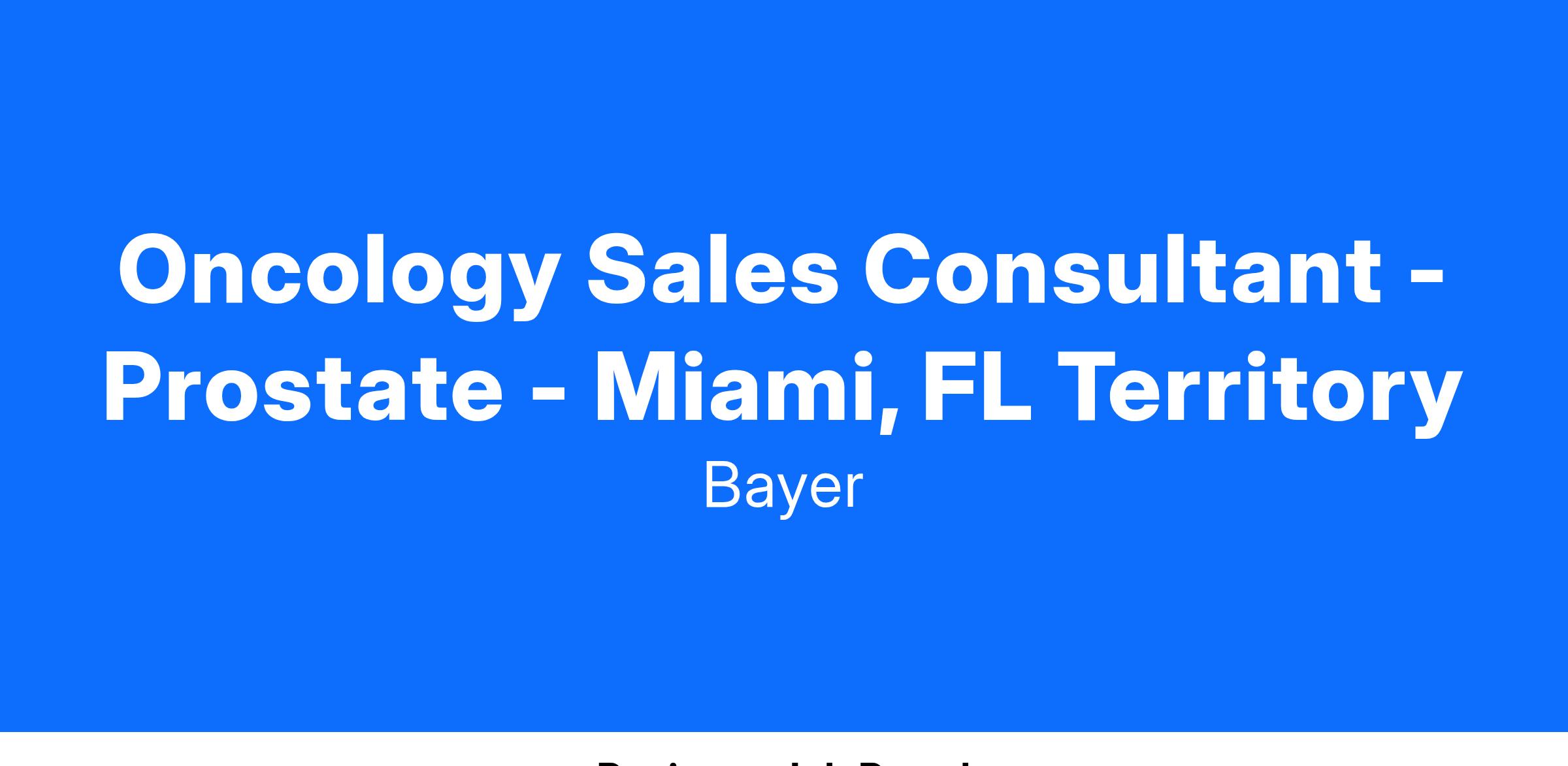 Oncology Sales Consultant - Prostate - Miami, FL Territory