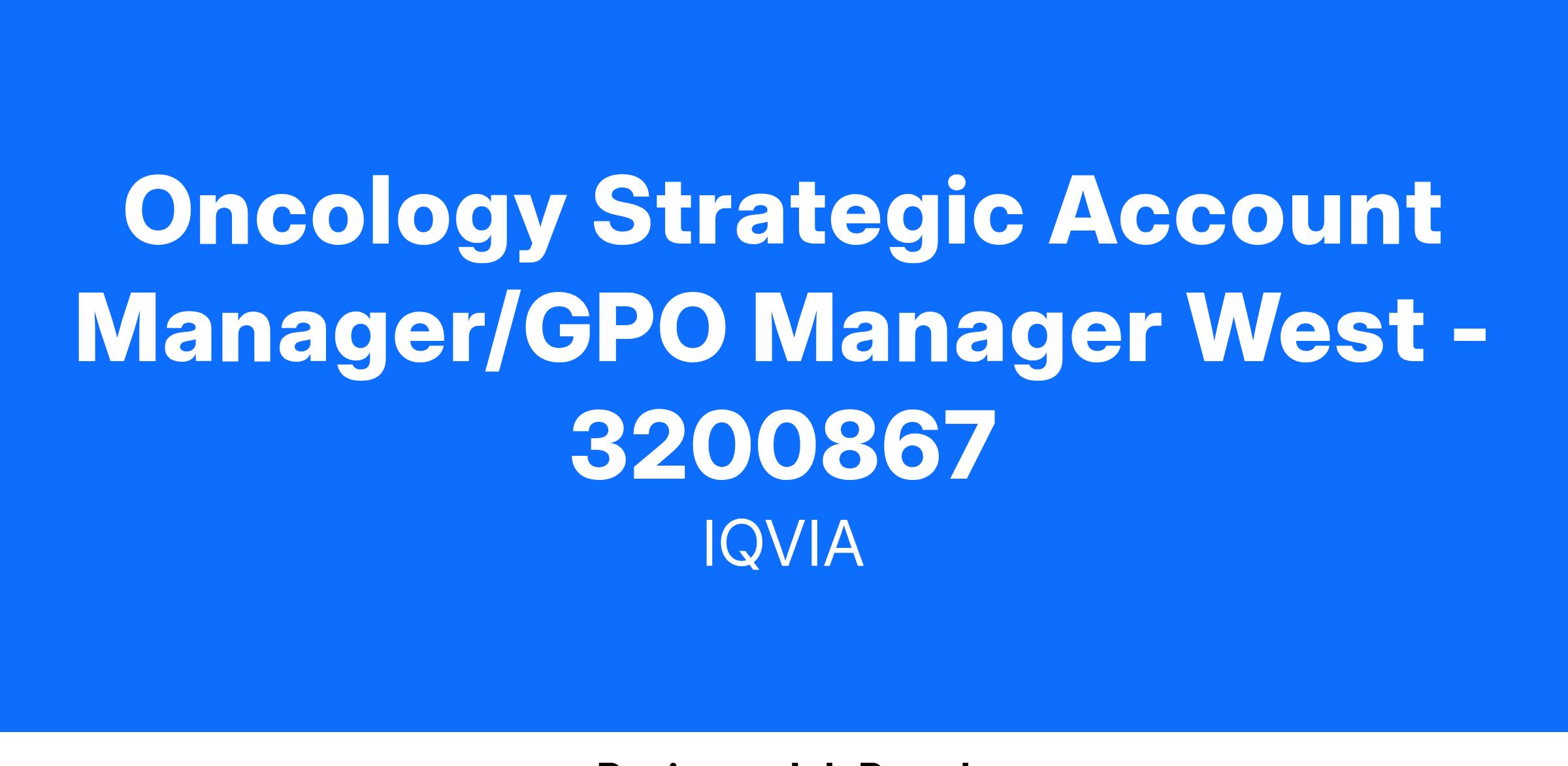 Oncology Strategic Account Manager/GPO Manager West - 3200867