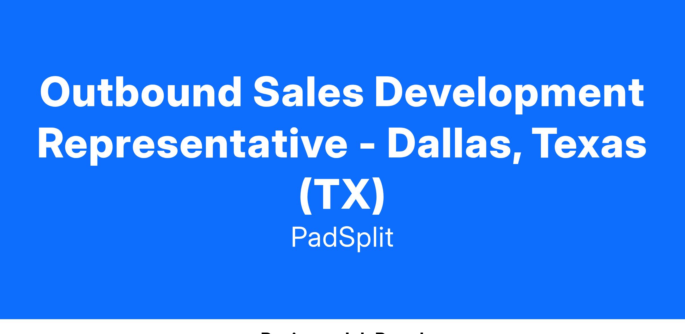 PadSplit is expanding its mission of creating affordable housing in Dallas, and we need an Outbound Sales Development Representative to help grow our network of property owner partners in the area. This role is key to reaching more people who can benefit from shared housing by building relationships and explaining how PadSplit can help property owners increase income while addressing the affordable housing crisis.