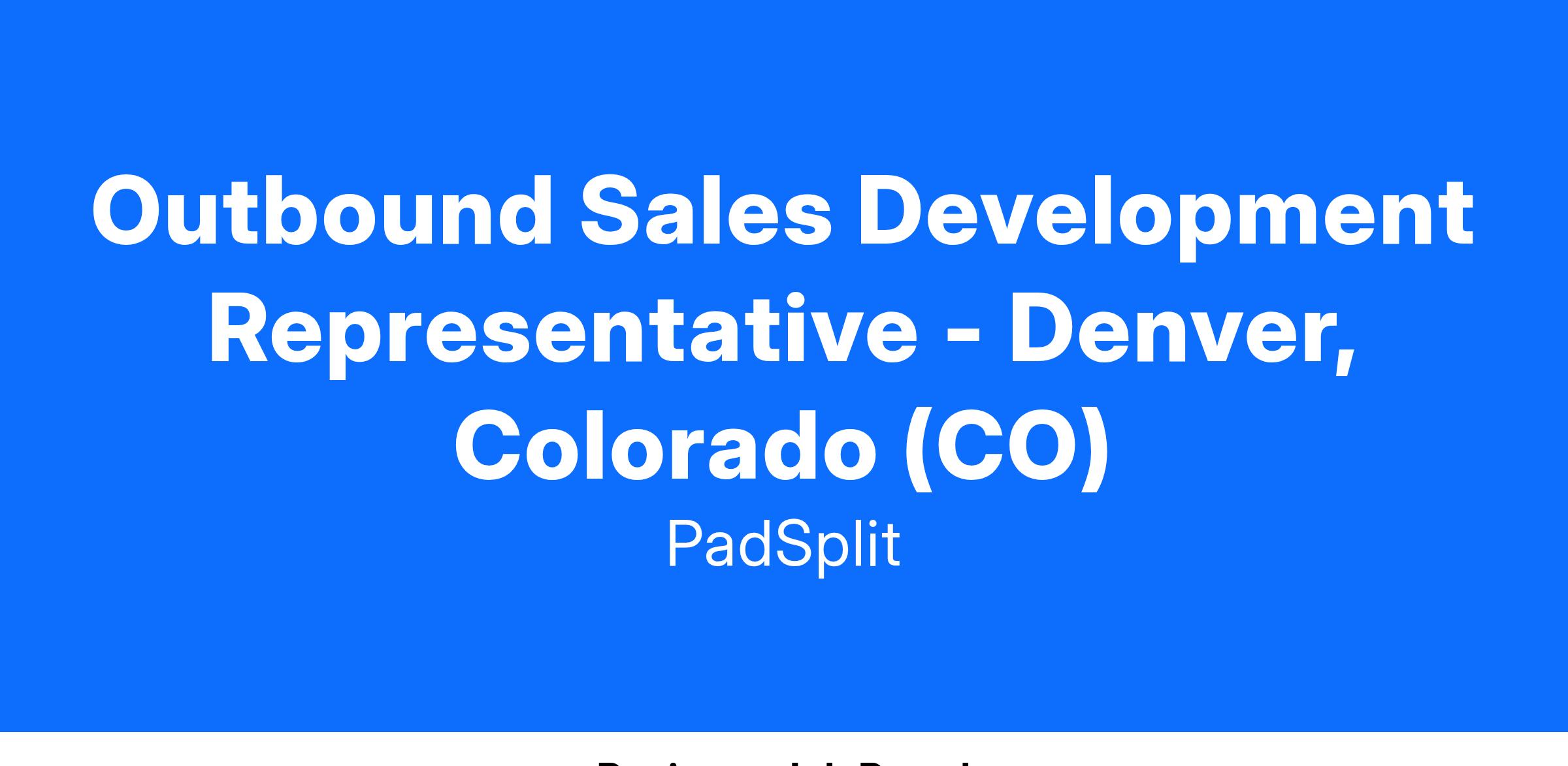 PadSplit is expanding its mission of creating affordable housing in Denver, and we need an Outbound Sales Development Representative to help grow our network of property owner partners in the area. This role is key to reaching more people who can benefit from shared housing by building relationships and explaining how PadSplit can help property owners increase income while addressing the affordable housing crisis.