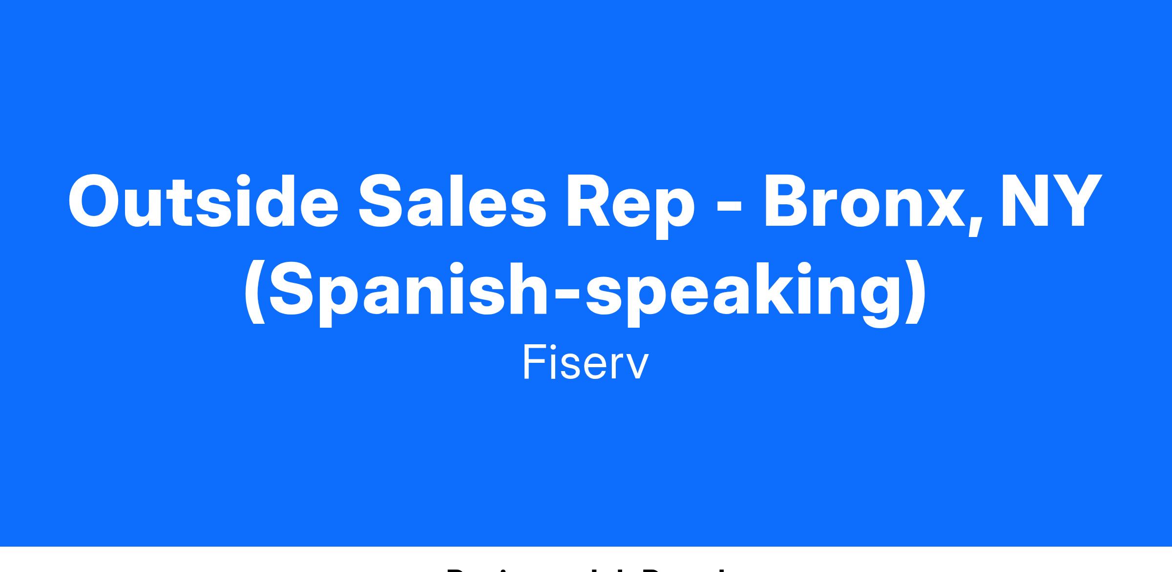 Outside Sales Rep - Bronx, NY (Spanish-speaking)What does a successful Outside Sales Rep do?