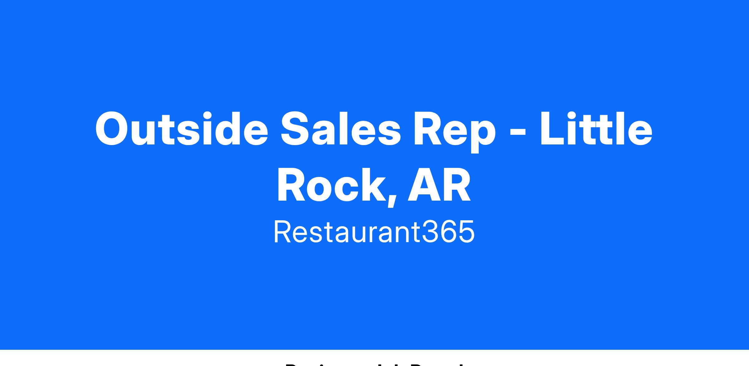 Location: Remote (Little Rock, AR) - must reside in this area