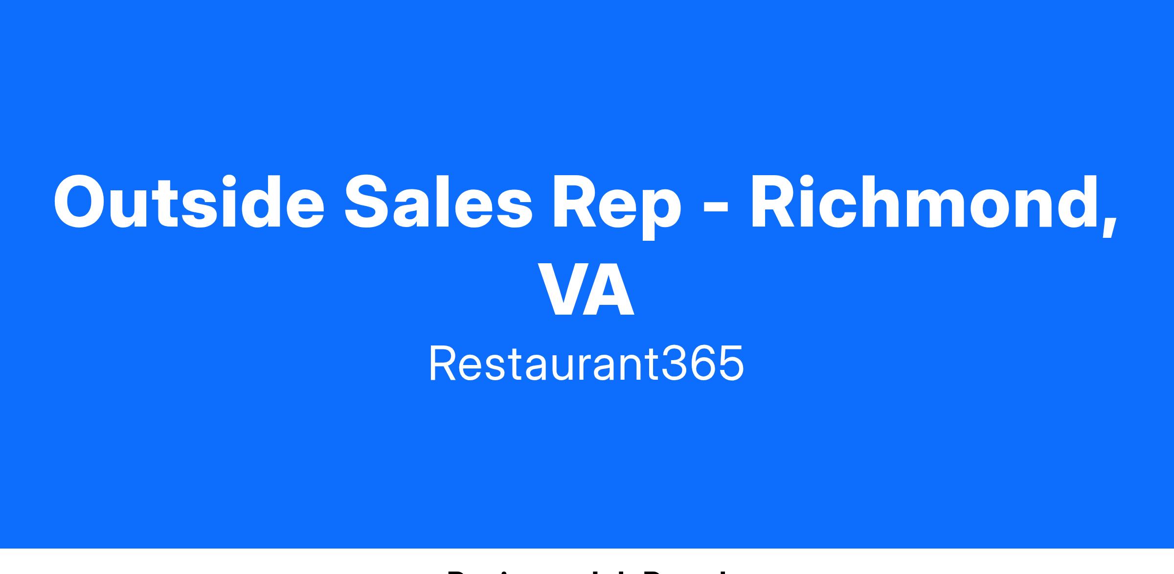 Position: Outside Sales Rep