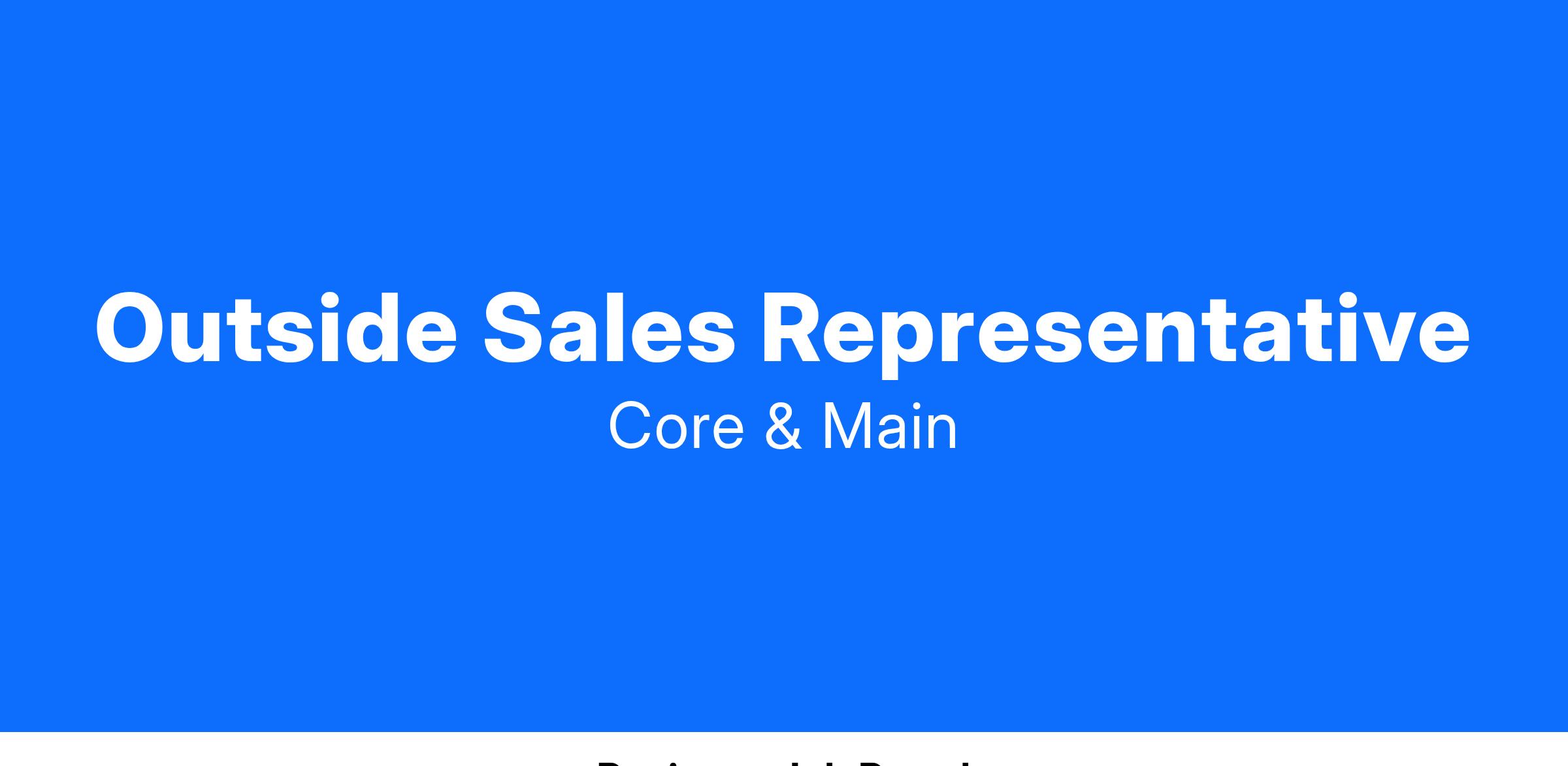 YOU love the art and challenge of making a deal and find fulfilment in seeing a plan come together. You don’t want to sit behind a desk all day and prefer environments where no two days are the same. You excel at developing existing relationships and creating new ones. You believe integrity, dedication, and persistence are key to building solid business partnerships. You are proactive in your work, always thinking ahead and providing top notch customer service. ARE you competitive and determined? Are you confident in your ability to build relationships? Are you someone who takes pride in your ability to problem-solve and pay attention to the details? Are you someone who enjoys providing solutions to exceed your customers’ expectations? Are you ready to have more flexibility in creating your own schedule? Are you ready to see your income match your effort? HERE at Core & Main, we value the individual, and the unique contributions you bring. Here we support and encourage continued learning. Here we invest in the development and well-being of our people, who are the key to our future. Here we value diversity and want to ensure each voice is heard. Here, our team members thrive as a community. Preferably, YOU have: 2 to 5 years of outside sales experience Experience working in construction supply or industrial distribution Prior experience work with general contractors and/or municipalities HERE, we have: Medical with 100% preventative care coverage Health Savings Account Dental and Vison 401K Tuition Reimbursement and Tuition Grants Continued learning opportunities through our onsite training facility and extensive online learning catalog Professional development and industry networking opportunities, e.g. Our Women’s Network and community engagement events About Core & Main Based in St. Louis, Core & Main is a leading distributor of water, sewer, storm drain and fire protection products in the United States. Operating approximately 320 branches nationwide, the company combines local expertise with a national supply chain to provide contractors and municipalities innovative solutions for new construction and aging infrastructure. Core & Main’s 4,500 plus associates are committed to the safe distribution of water and fire protection to help communities thrive. Visit www.coreandmain.com to learn more. Core & Main is an Equal Employment Opportunity employer. Employment at Core & Main is based solely on a person’s merit and qualifications directly related to professional competence. Core & Main does not discriminate against any employee or applicant on the basis of race, creed, color, religion, national origin, nationality, ancestry, age, disability, veteran status, pregnancy or related condition (including breastfeeding), affectional or sexual orientation, gender identity or expression, marital status, status with regard to public assistance, citizenship, or any other basis protected by law. None of the questions in this application are intended to elicit information regarding any protected characteristics, nor imply any limitation, illegal preferences or discrimination based upon non-job-related information or protected characteristics. For more information, please click here or visit https://www.eeoc.gov