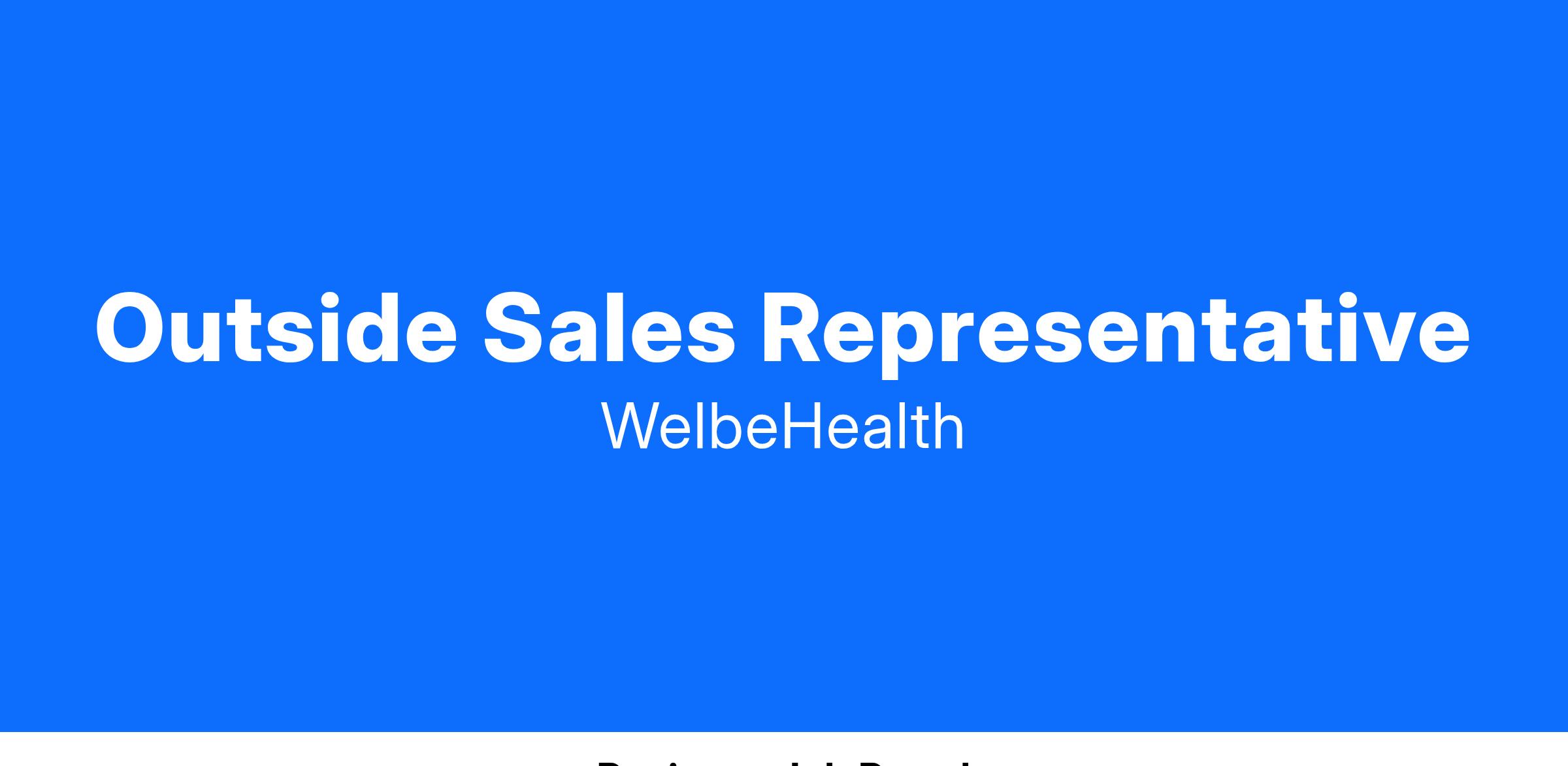 Benefits of Working at WelbeHealth: Apply your sales expertise in new ways as we rapidly expand. You will have the opportunity to design the way we work in the context of an encouraging and loving environment where every person feels uniquely cared for.