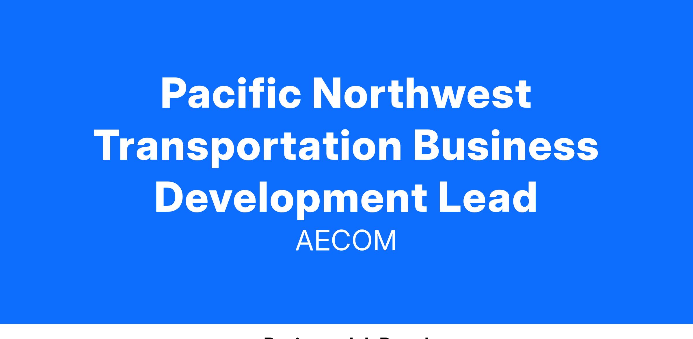 AECOM is seeking a self-starter and experienced Business Development Leader to drive growth for our Pacific Northwest Transportation business based in our Seattle, WA office. This external facing leader will represent AECOM in the marketplace and oversee business development, sales, and strategy.