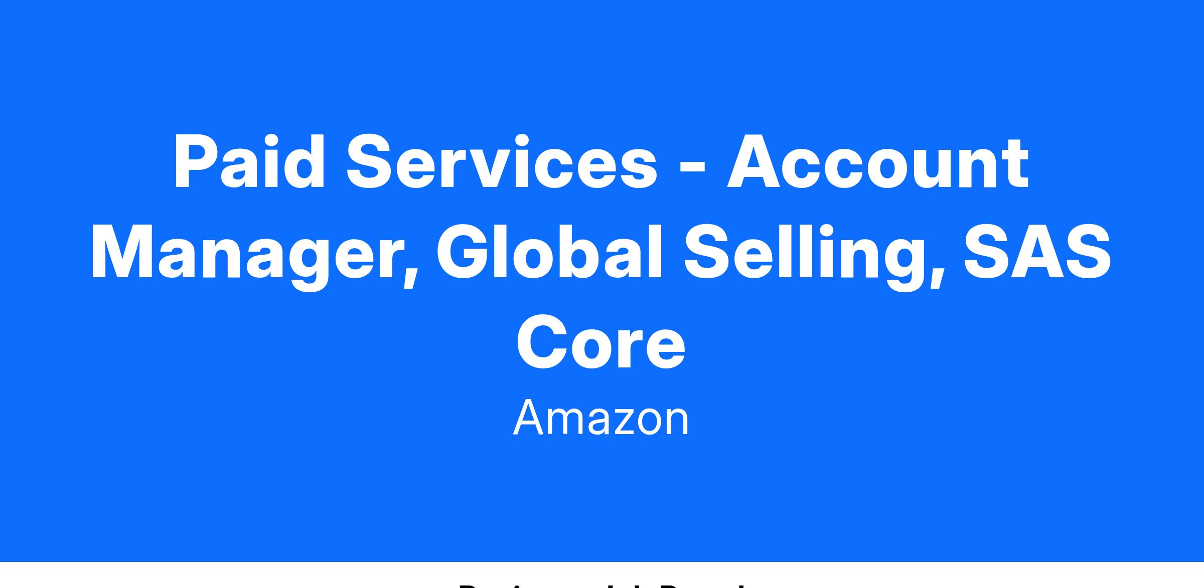 Amazon provides enterprises the opportunity to sell their goods on the Amazon platform worldwide, and more than 2 million sellers have been using this Marketplace service today. Amazon is developing infrastructure aggressively to support this growth around the world, particularly in the booming cross border selling area. ESM SAS Core Paid Service is a nascent but fast-expanding program aiming at providing China-based Selling Partners (SP) with professional and value-added services including account management services and consulting services to drive SPs to maximize their presence and business in Amazon Global marketplaces. Meanwhile to enhance SP experience and improve the Amazon end customer experience by enabling more selection, better input management and fewer defects in their shopping experience.