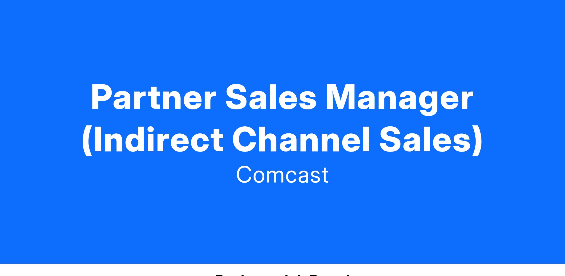 The Partner Sales Manager is responsible for developing and implementing strategies for marketing and selling Comcast Business products and services through indirect distribution channels. Manage and maintain ongoing relationships with third-party vendors and indirect national channel partners/Technology Service Distributors (TSDs). Drive revenue by ensuring Partners are positioning the Comcast Business Advanced Solutions portfolio to their end-users through education and consistent relationship building practices. This is an individual contributor quota bearing role that does not have direct responsibility for supervision or performance.