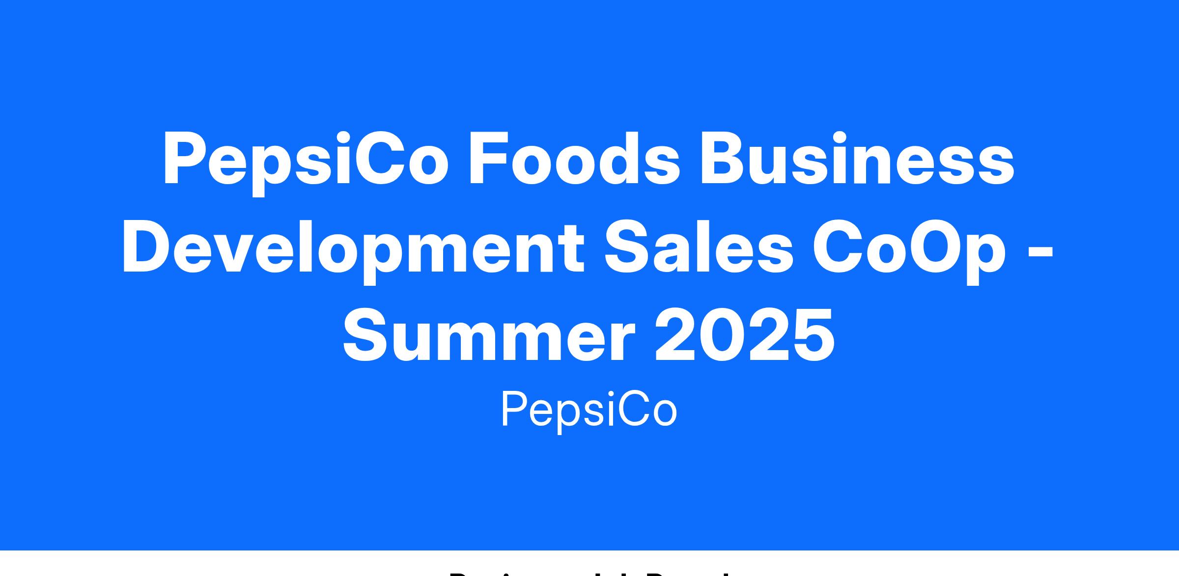 PepsiCo Foods Business Development Sales CoOp - Summer 2025