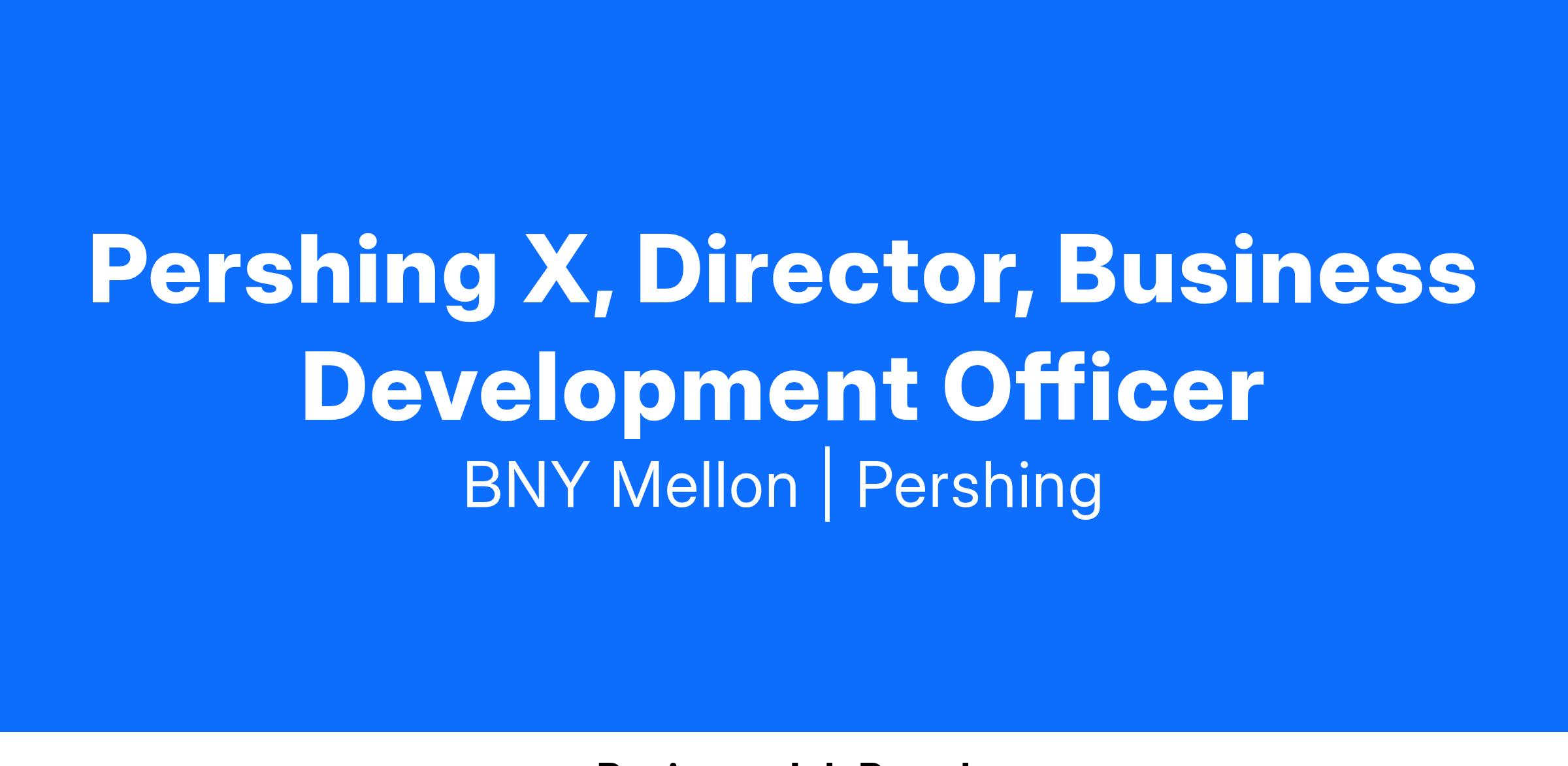 We’re seeking a future team member for the role of Business Development Officer to join our Pershing X team.