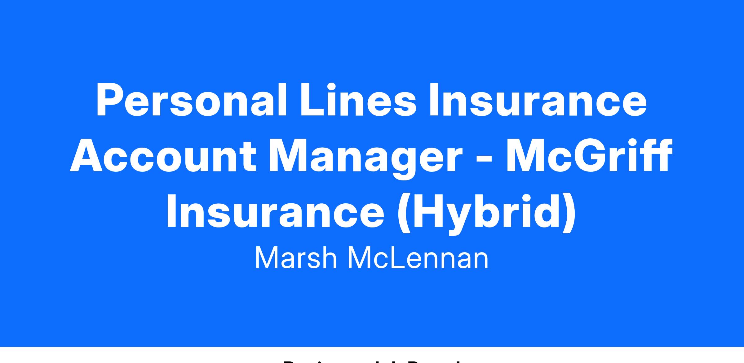 Personal Lines Insurance Account Manager - McGriff Insurance (Hybrid)